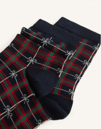 Chaussettes courtes à l’imprimé tartan emblématique. Confectionnées en maille douce et chaude, elles sont légères et agréables au toucher. Ornées de nœuds dorés, elles offrent un confort optimal.