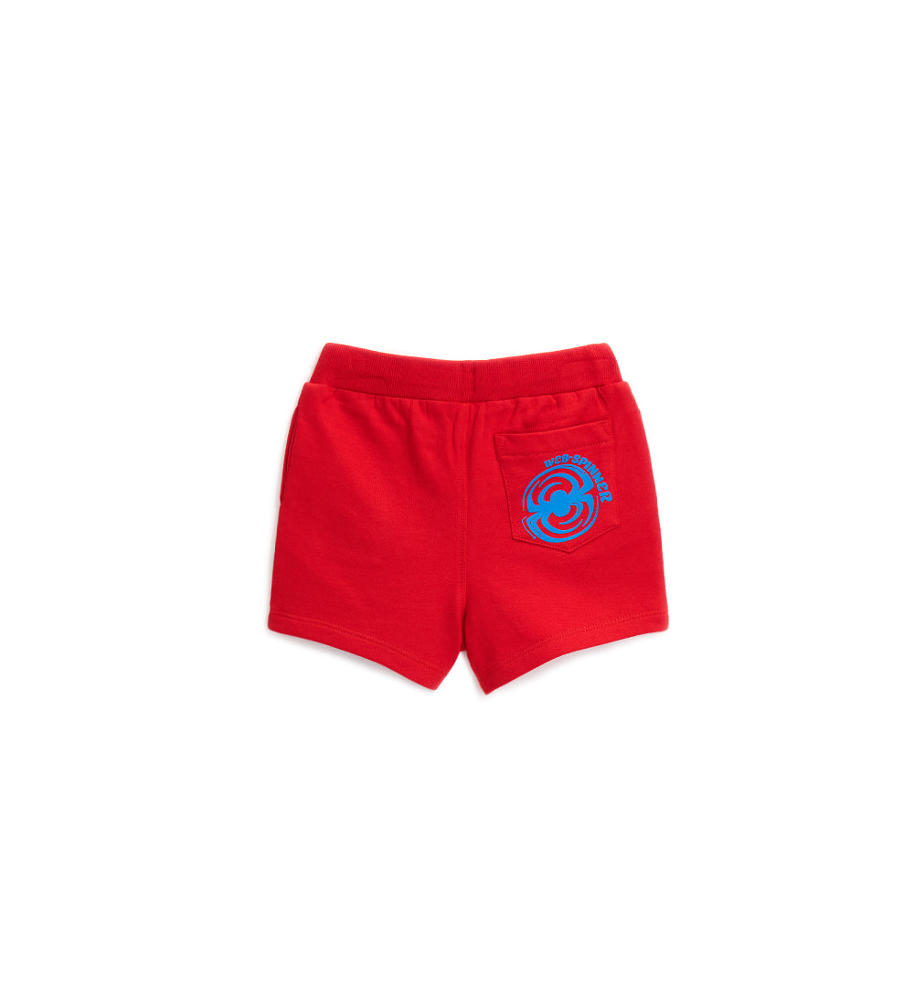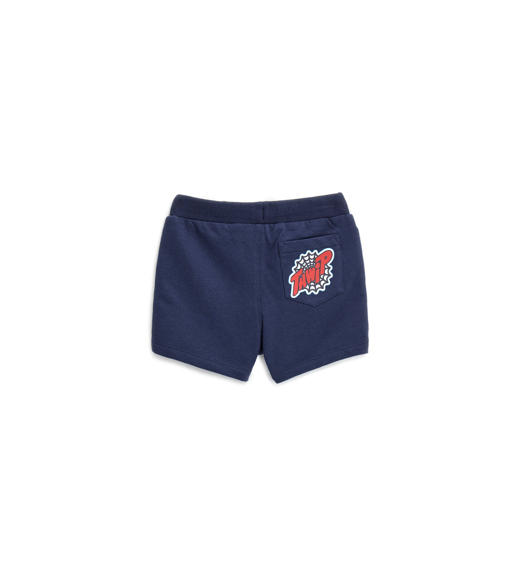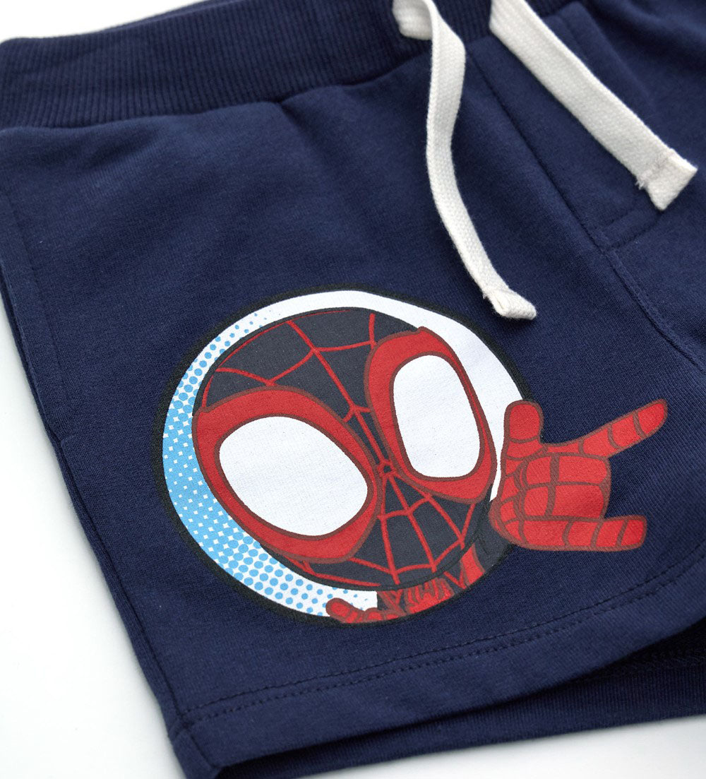 Bermuda Marvel en molleton de coton, taille élastique avec cordon de serrage réglable, poches avant et poche arrière plaquée.
