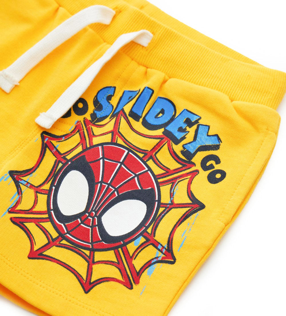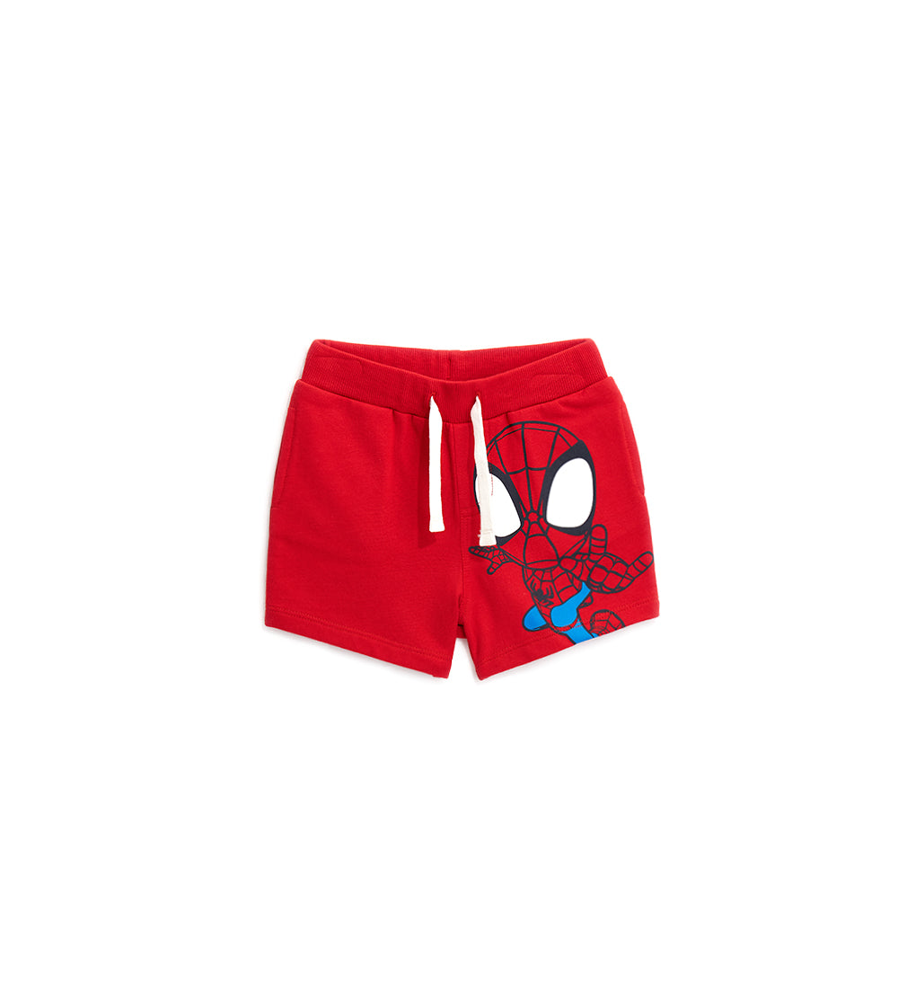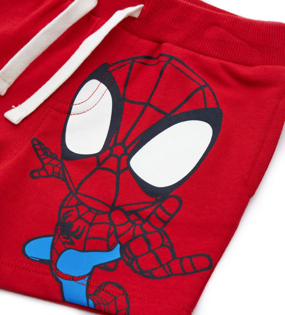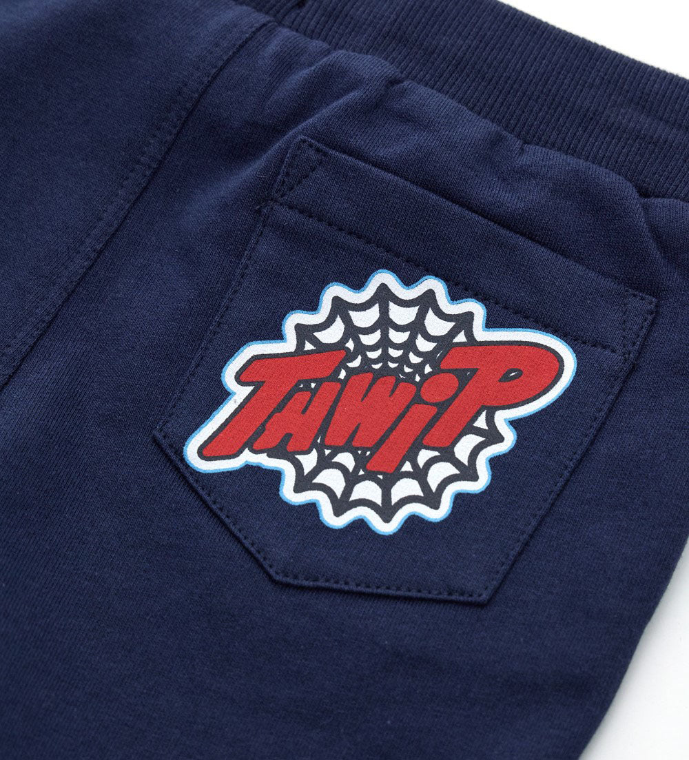 Bermuda Marvel en molleton de coton, taille élastique avec cordon de serrage réglable, poches avant et poche arrière plaquée.