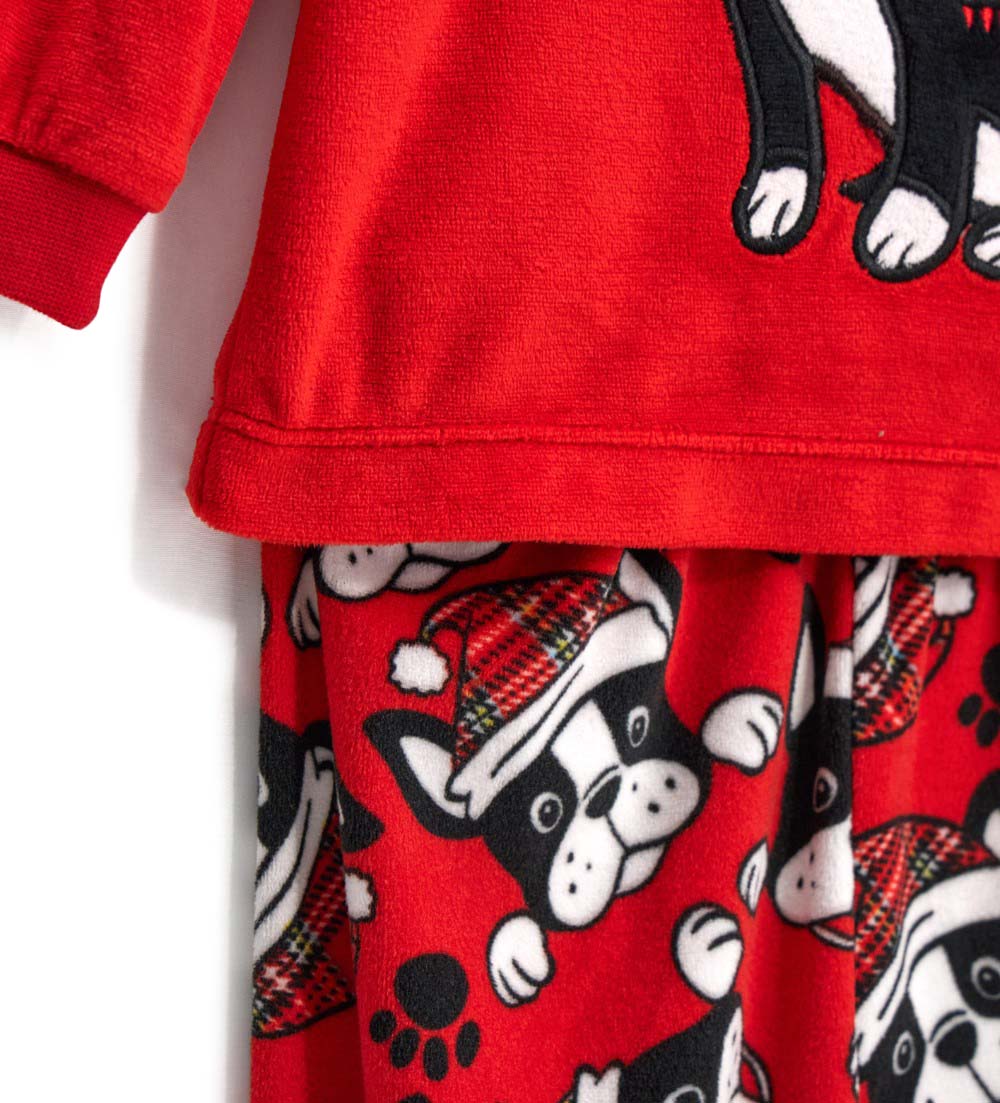 Pyjama avec t-shirt à manches longues en fourrure écologique, col ras du cou côtelé et broderie.