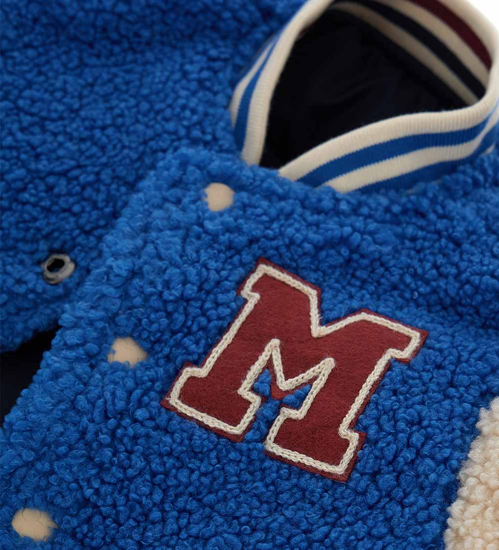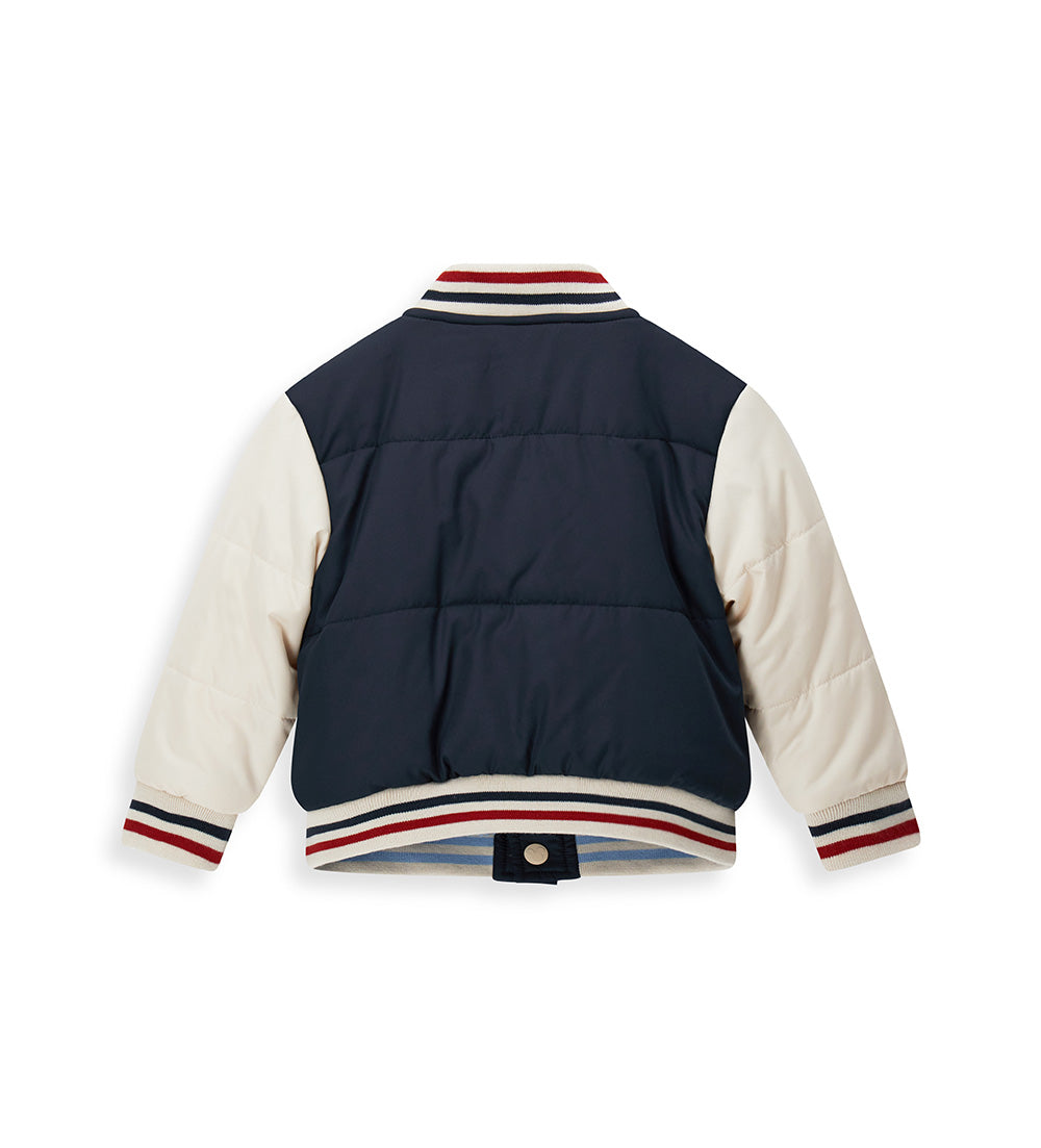 Blouson aviateur réversible Disney Mickey Mouse avec rembourrage. Côté 1 en nylon avec manches et patch contrastés, côté 2 en peluche écologique chaude avec manches et patch contrastés. Ouverture par boutons-pression et bords-côtes teints pour un look dynamique et chaleureux.