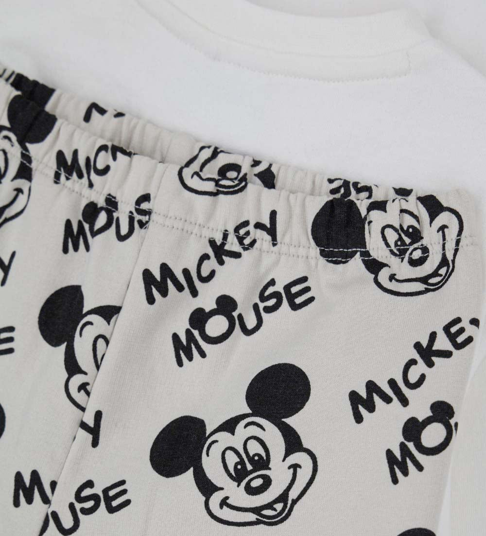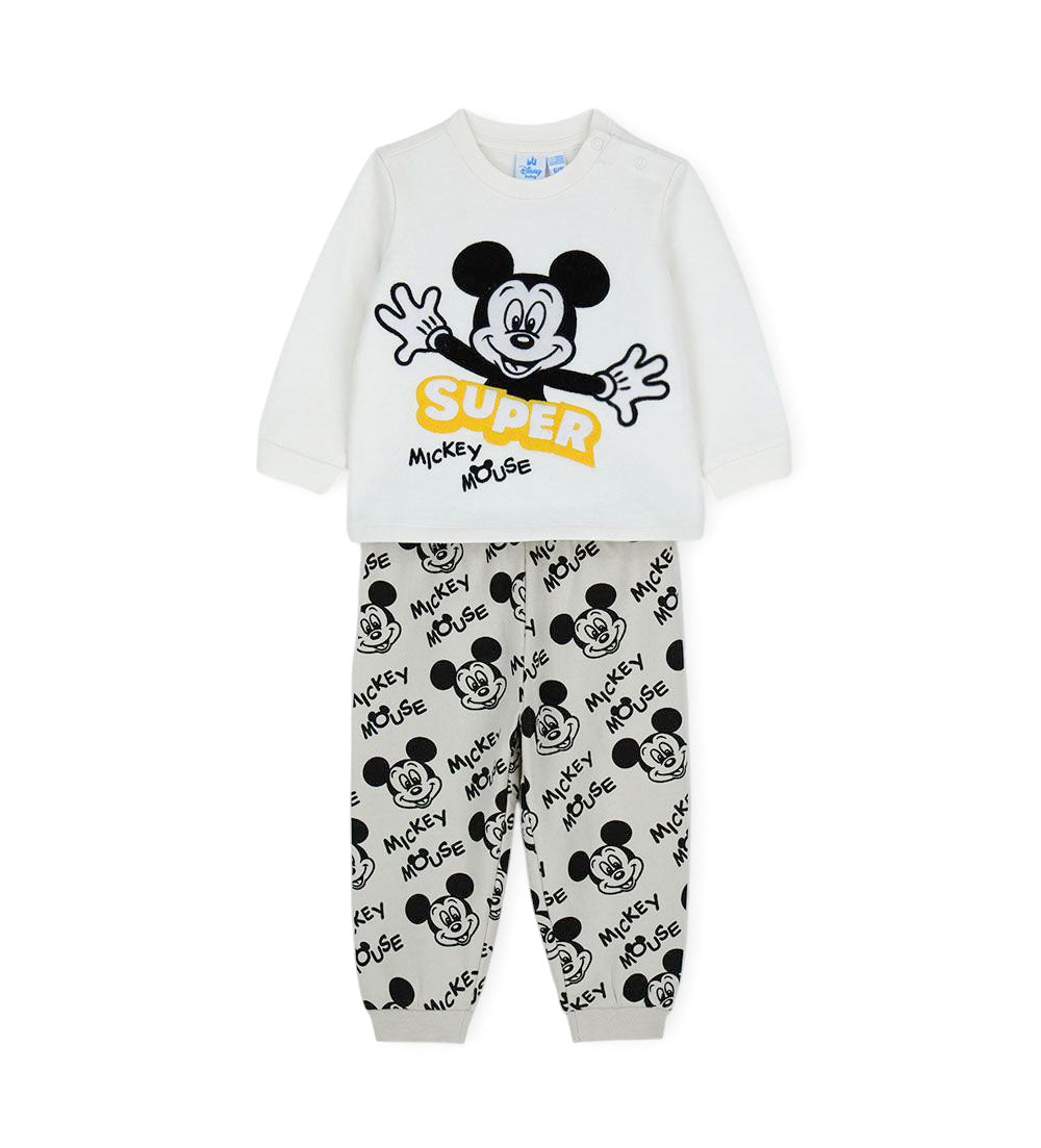 Pyjama polaire Disney Mickey Mouse avec t-shirt à col ras du cou, broderie et application sur le devant, ouverture aux épaules et bordures côtelées et pantalon avec imprimé all-over et bordures côtelées.