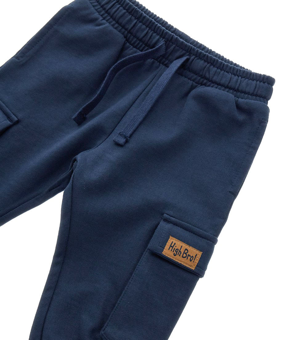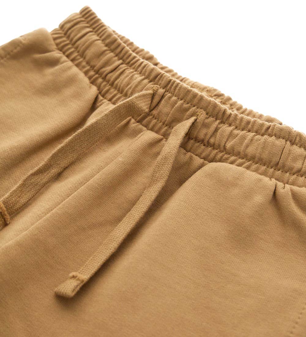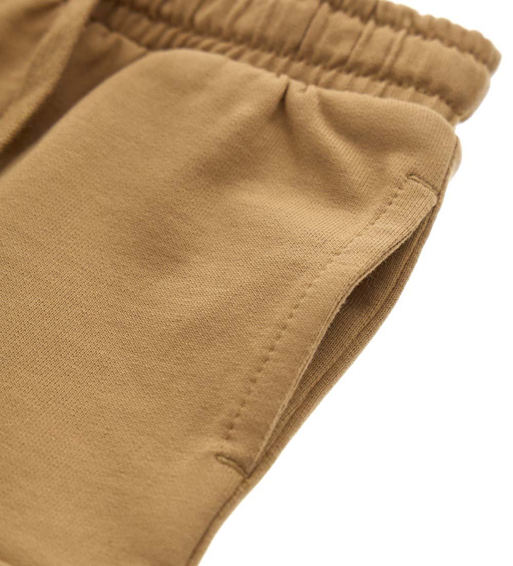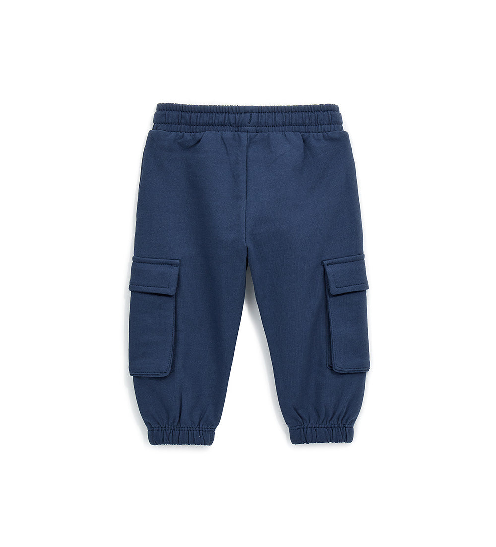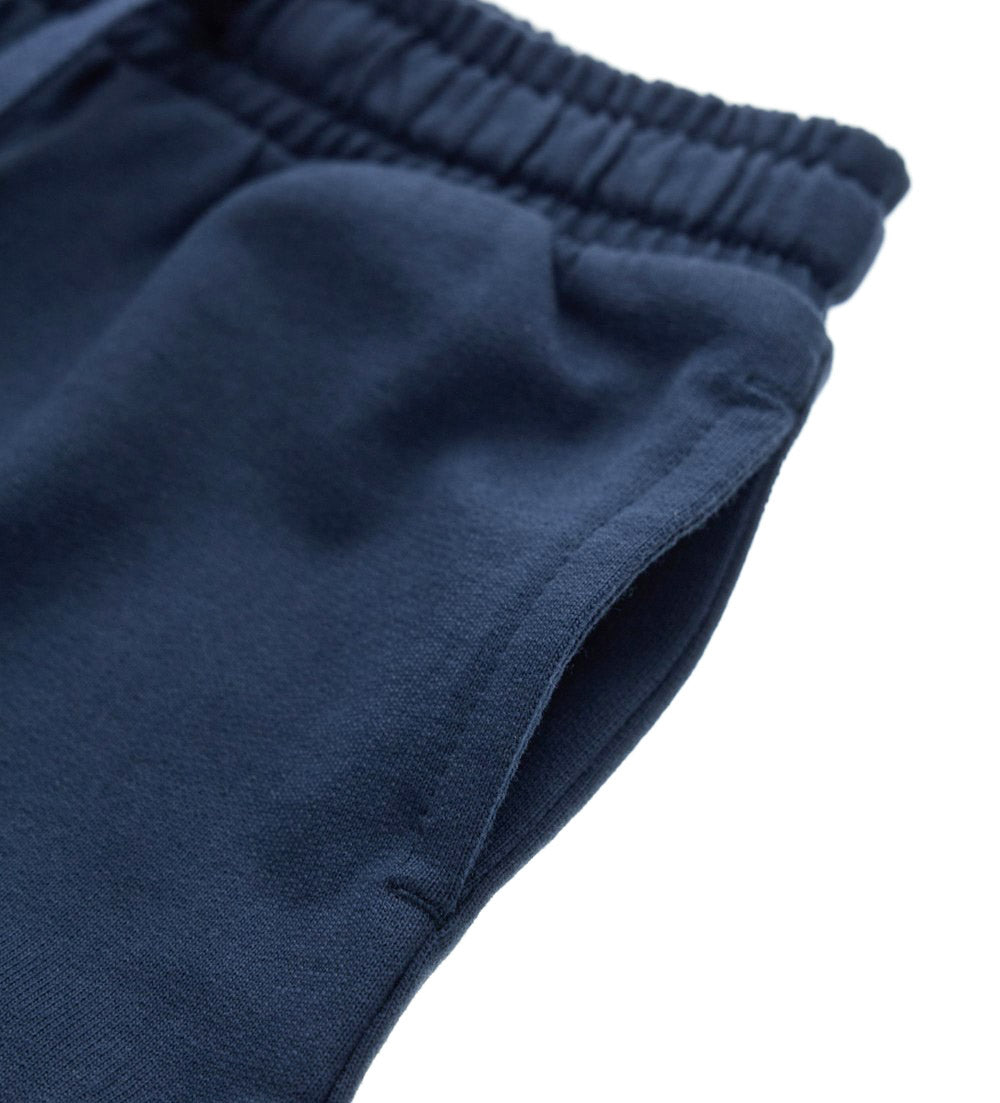 Pantalon en molleton de coton avec taille et ourlet élastiqués, cordon de serrage à la taille, grandes poches latérales et étiquette brodée sur la poche.