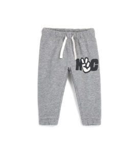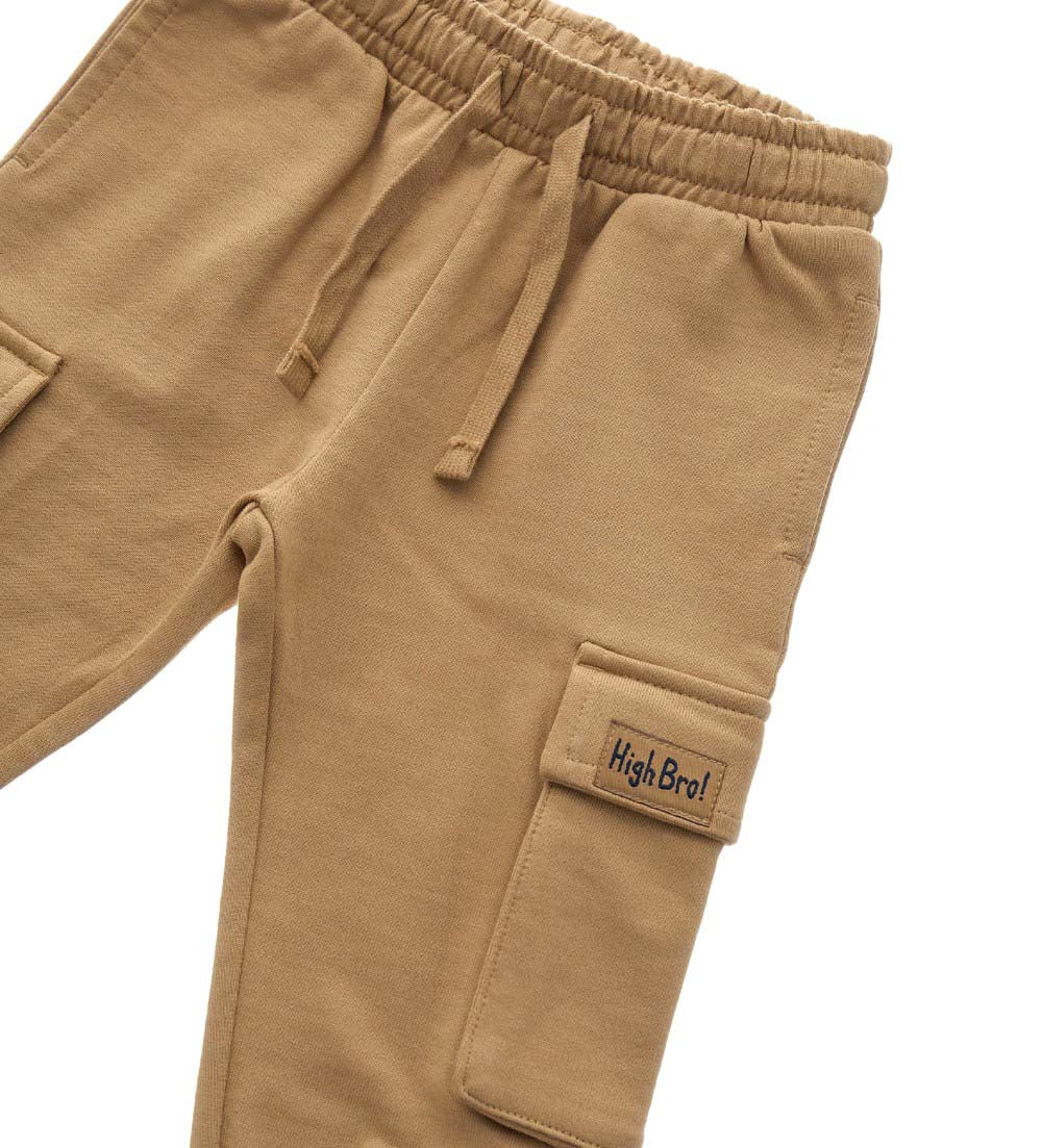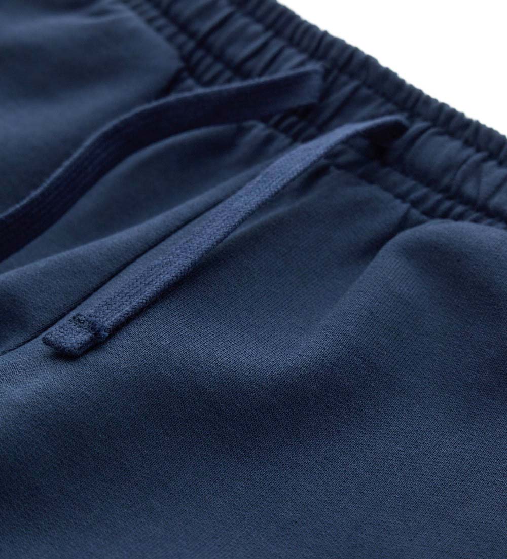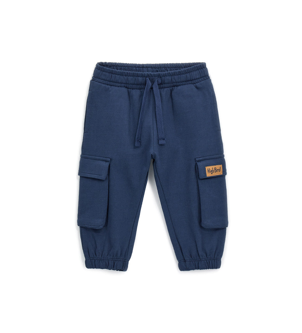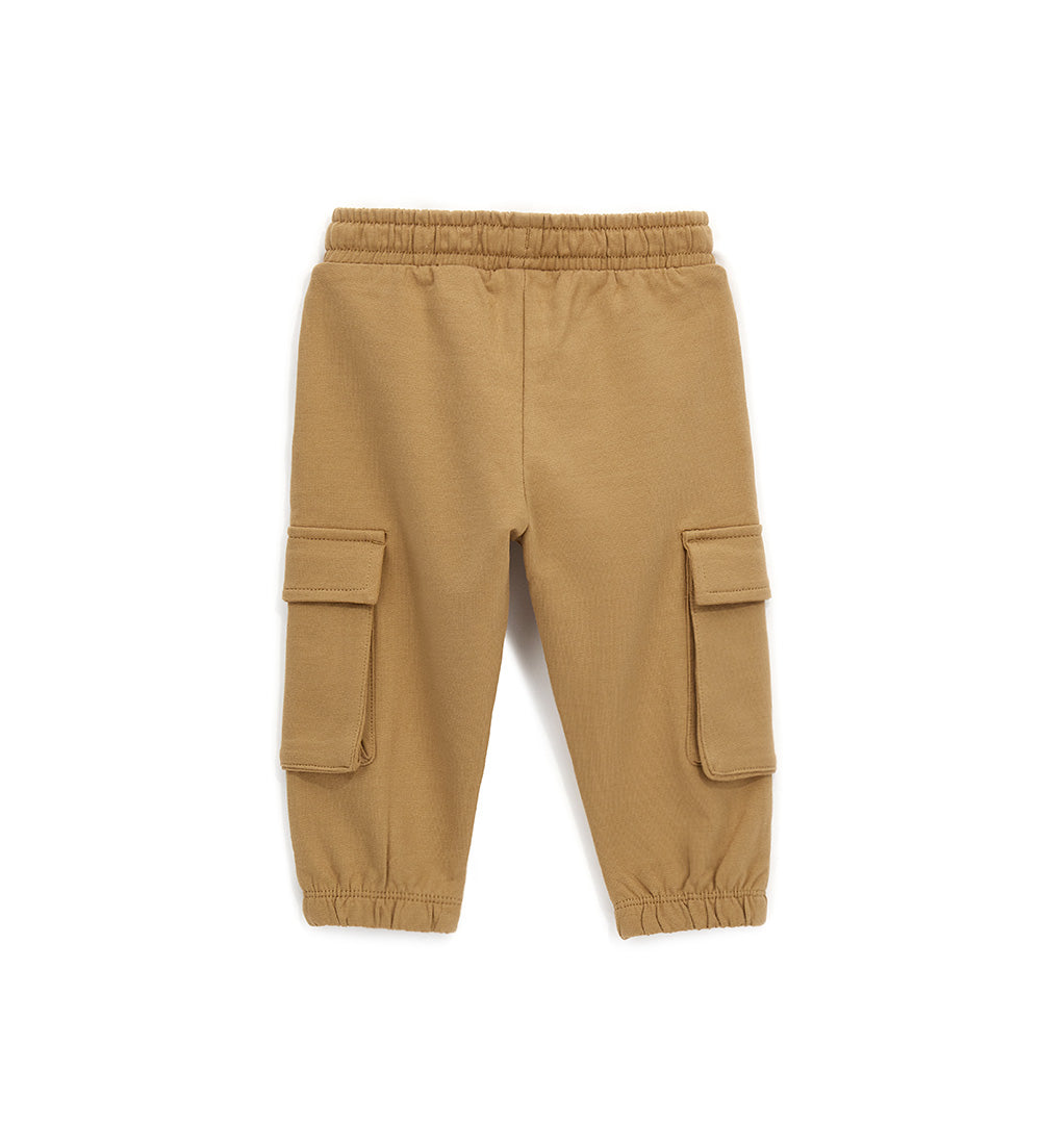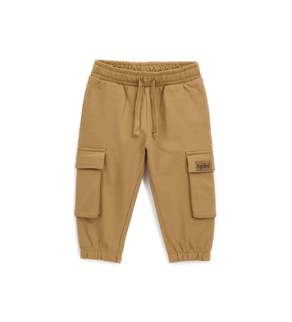 Pantalon en molleton de coton avec taille et ourlet élastiqués, cordon de serrage à la taille, grandes poches latérales et étiquette brodée sur la poche.