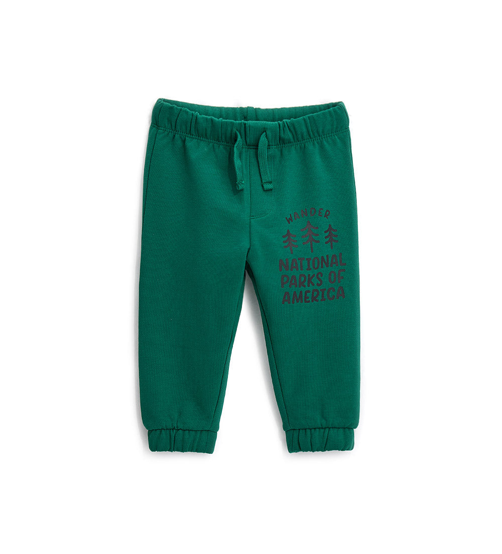 Pantalon en molleton de coton extensible avec taille et ourlet élastiqués et cordon de serrage à la taille.