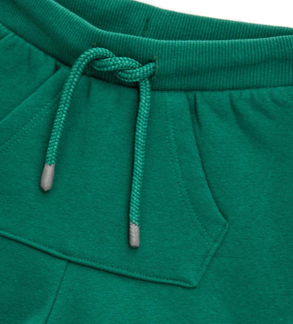 Pantalon chaud en coton polaire avec taille élastique réglable et lacets, poche avant et finitions côtelées sur le bas.