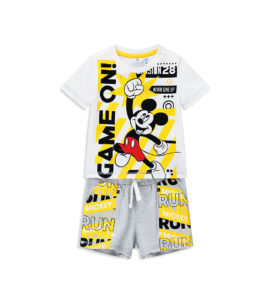 Ensemble débardeur et bermuda en coton avec débardeur col rond avec imprimé et ouverture à bouton-pression sur l’épaule et bermuda avec taille élastiquée et poches passepoilées.
