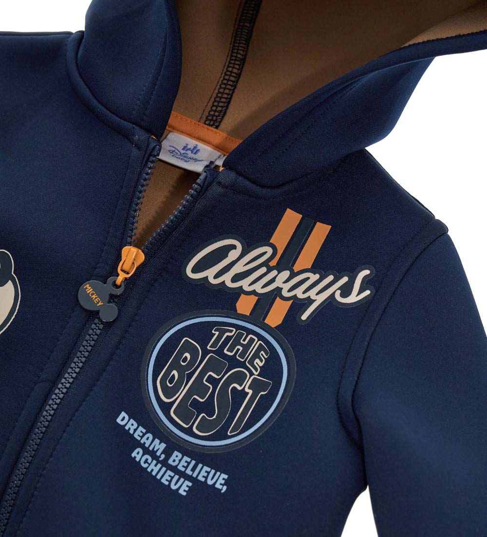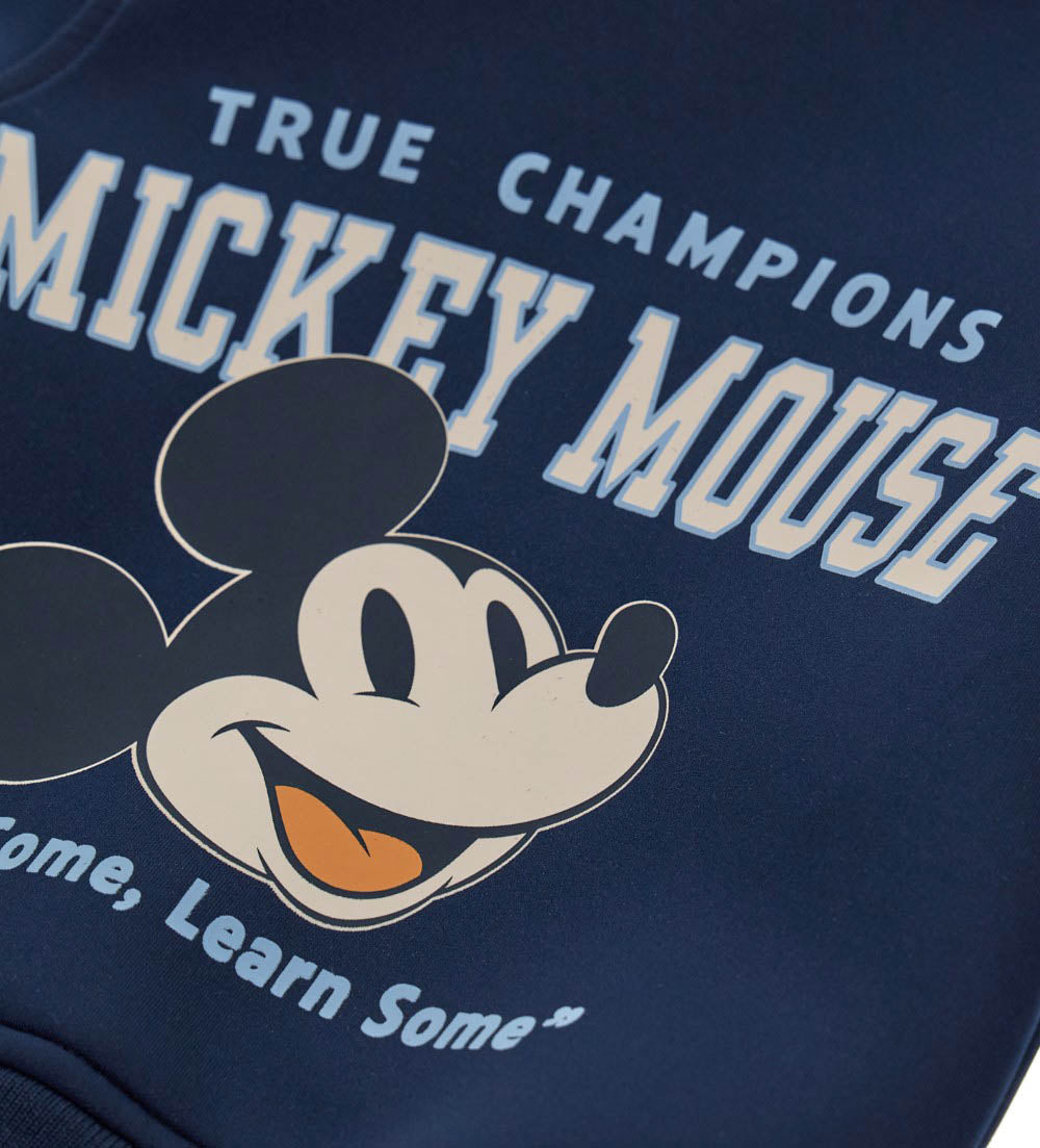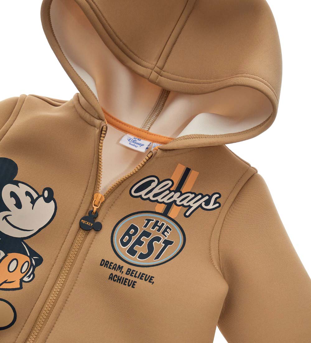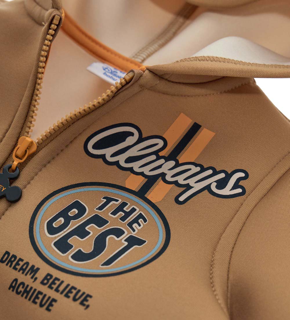 Sweat-shirt Disney en néoprène avec capuche, ouverture zippée devant, finitions côtelées, imprimés devant et dos et étiquette brodée sur le côté.