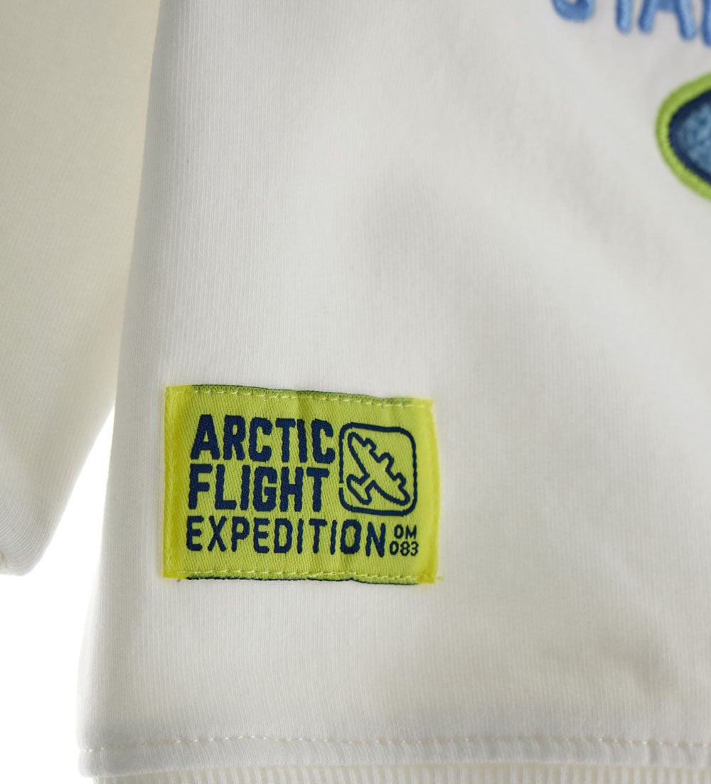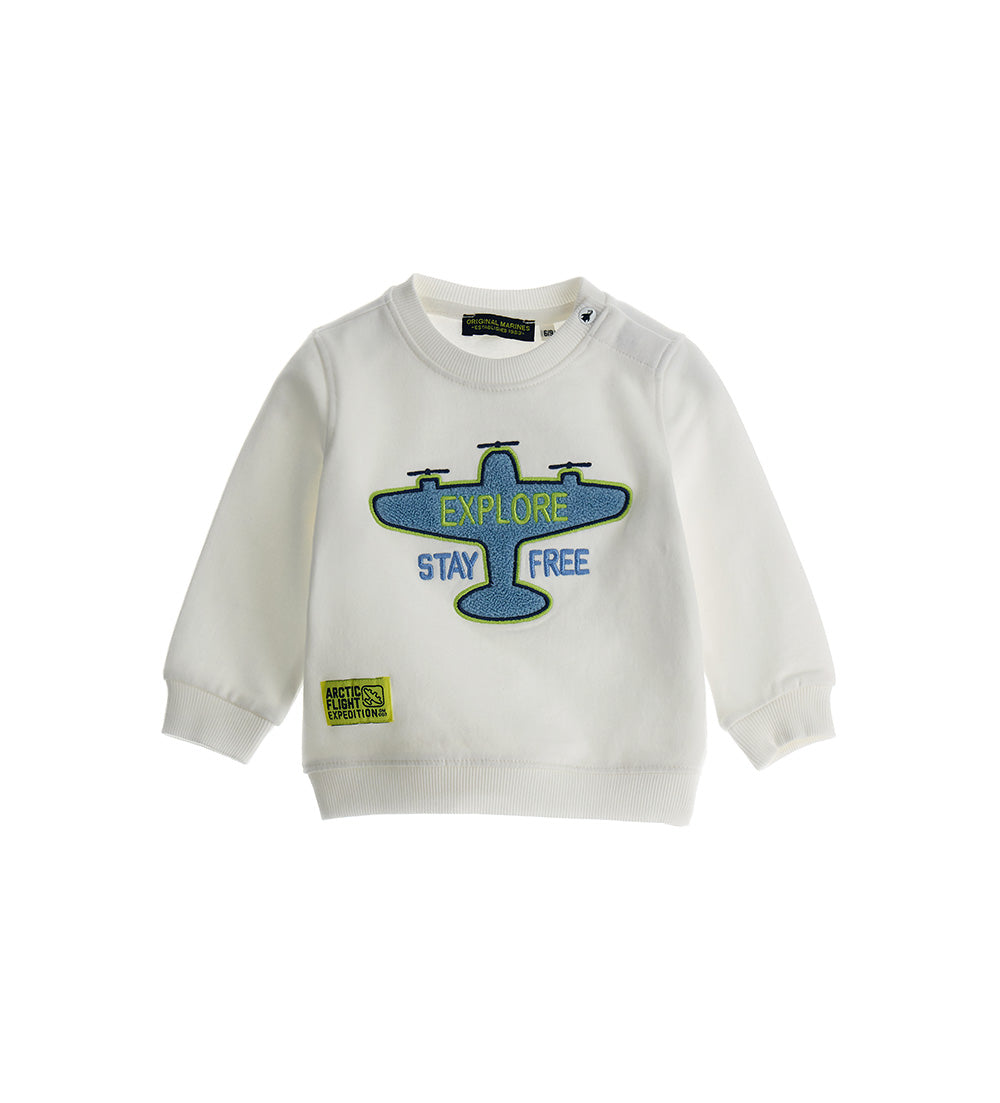 Sweat-shirt ras du cou en coton extensible avec ouverture sur le devant par boutons-pression et bordures côtelées teintes en fil.