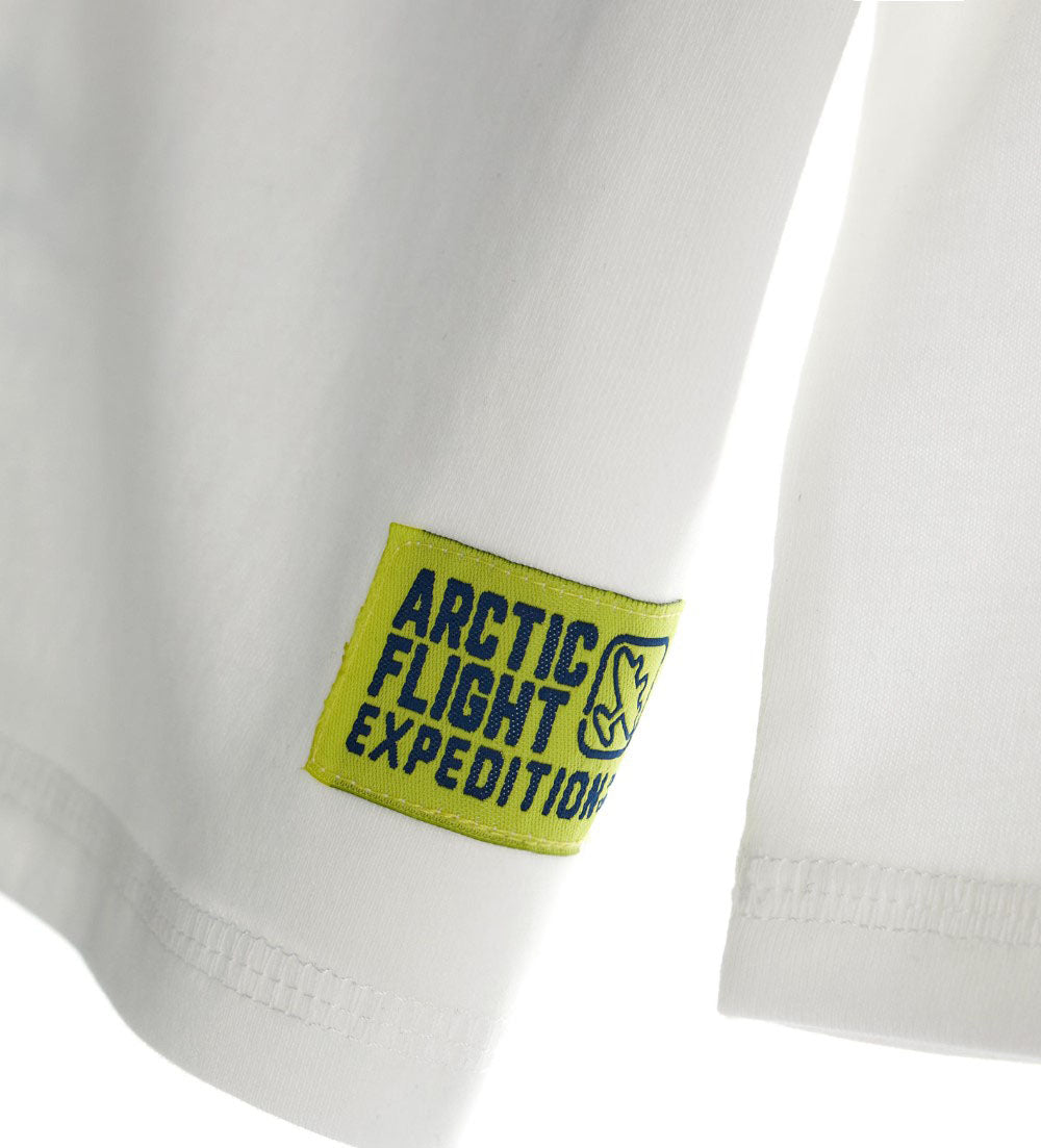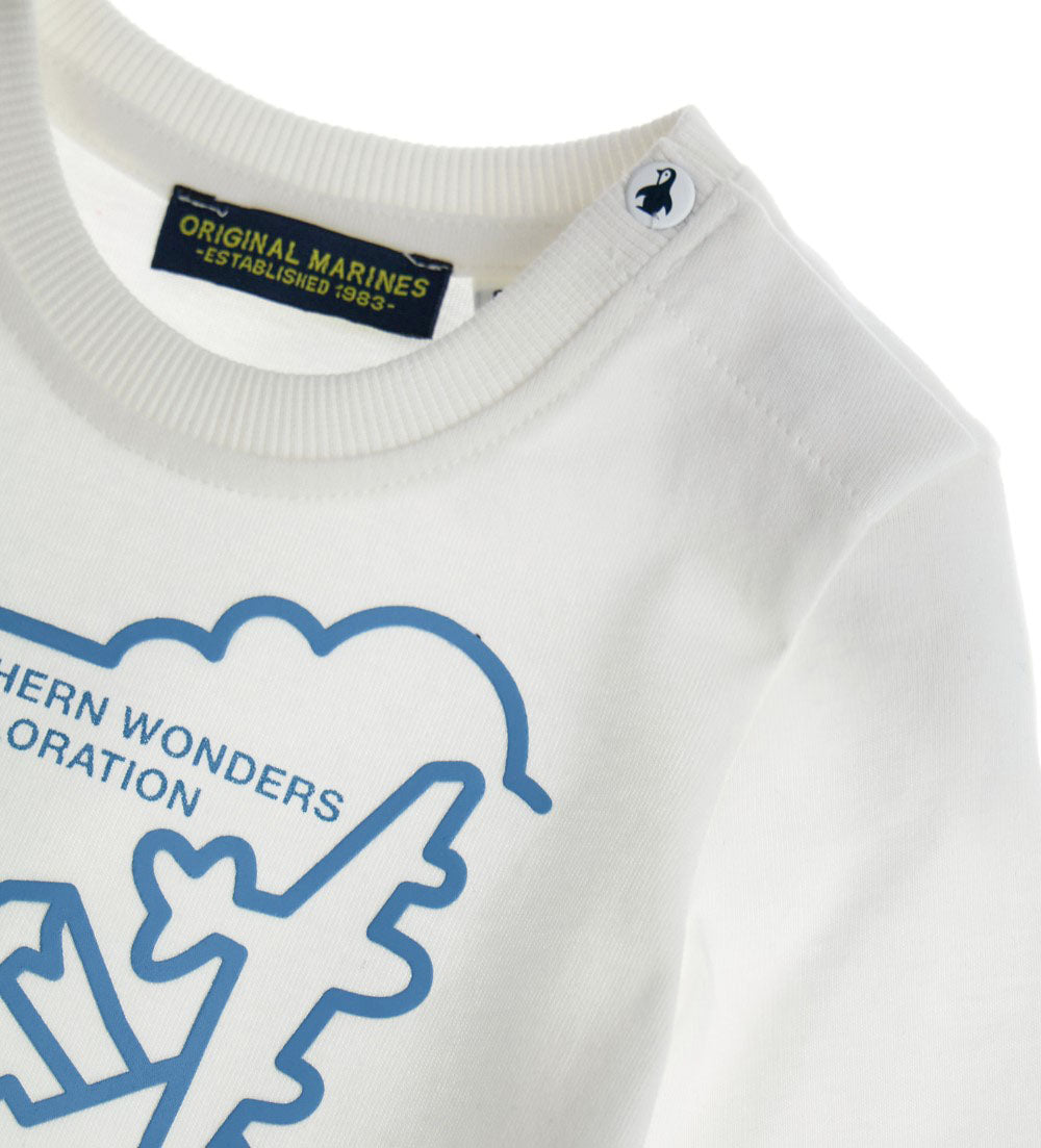 T-shirt ras du cou en coton à manches longues avec ouverture aux épaules par un bouton pression.