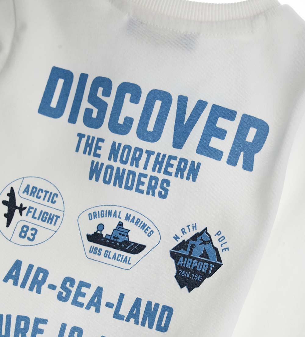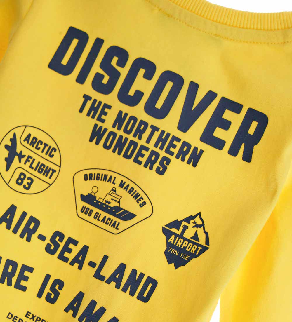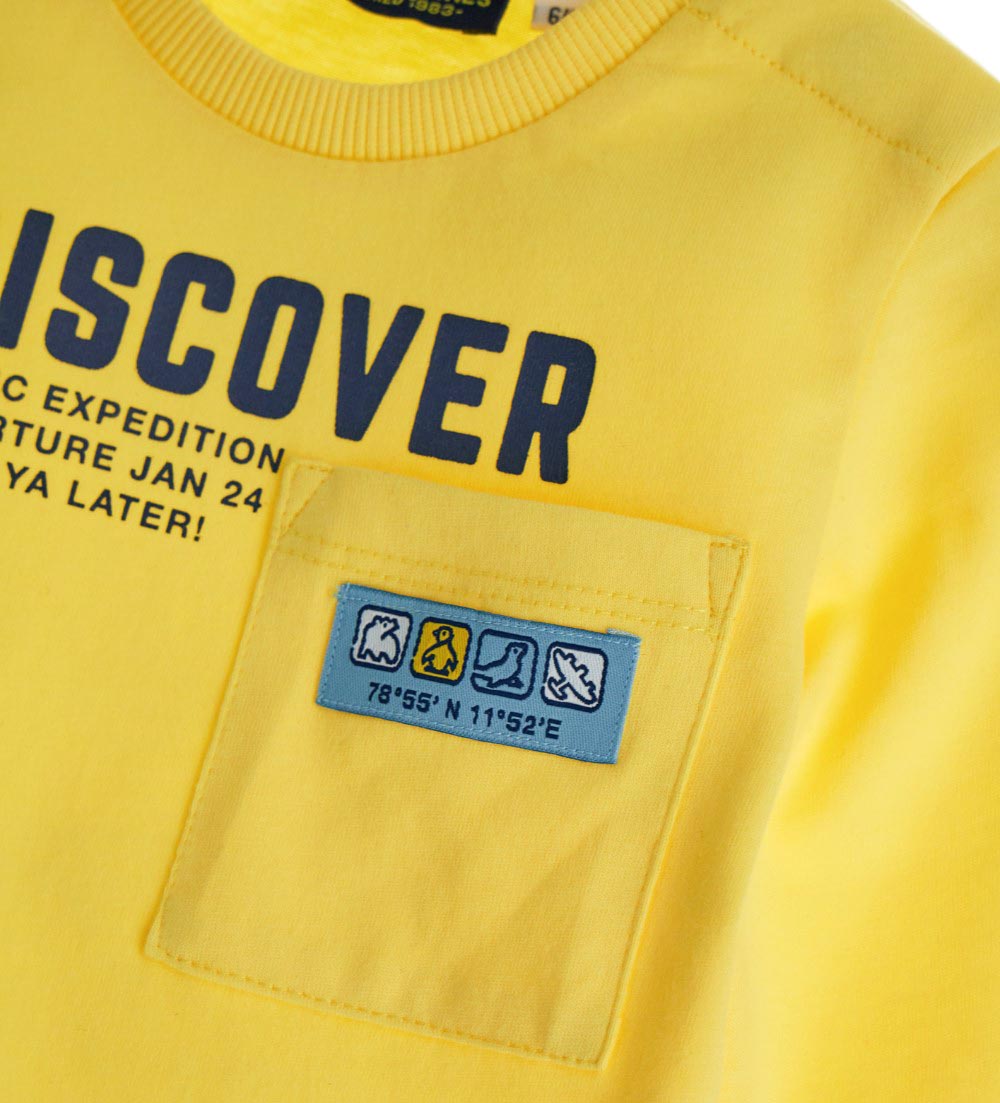 T-shirt ras du cou en coton à manches longues avec ouverture aux épaules par bouton-pression et poche avant.