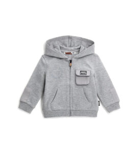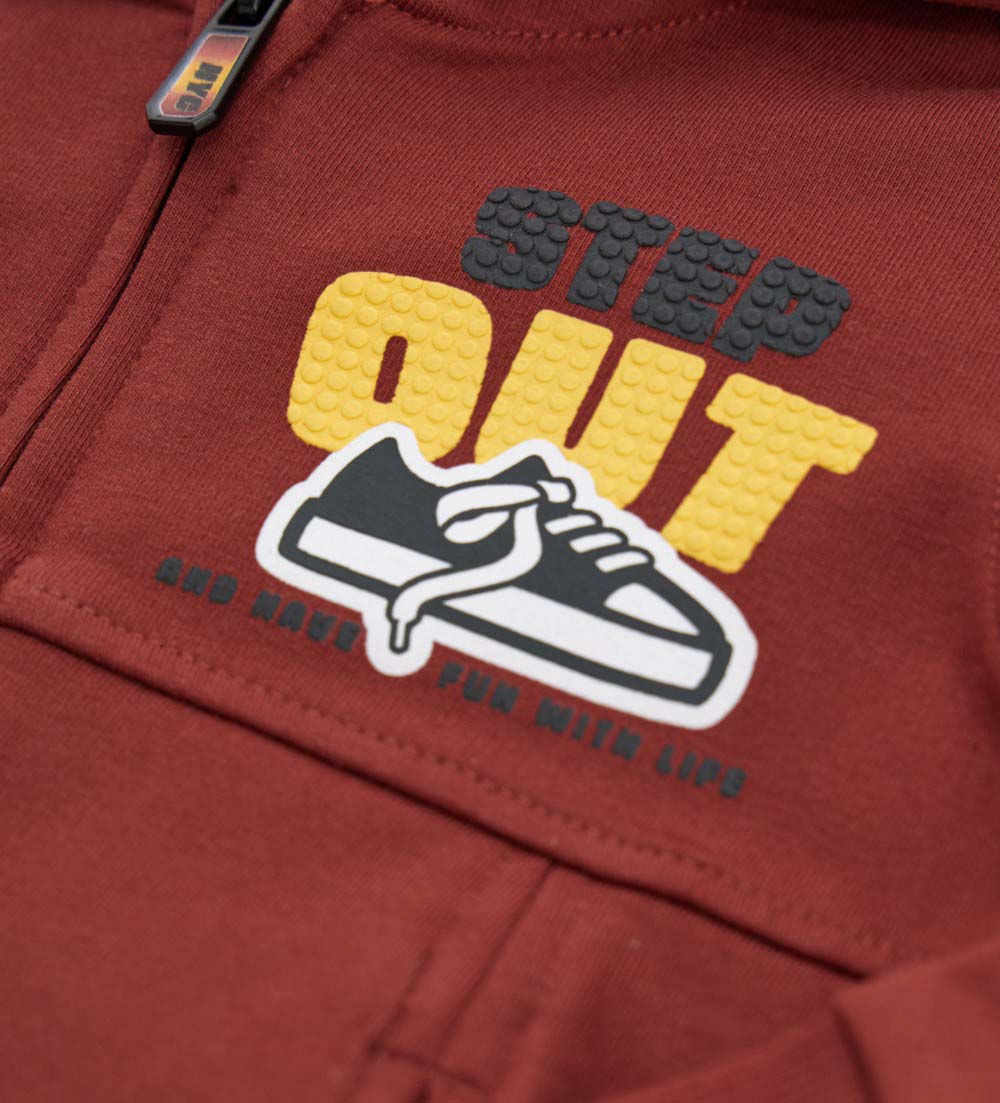 Sweat-shirt chaud en coton mélangé avec capuche, ouverture zippée, poche kangourou, finitions côtelées et imprimés au dos, devant et sur la manche.