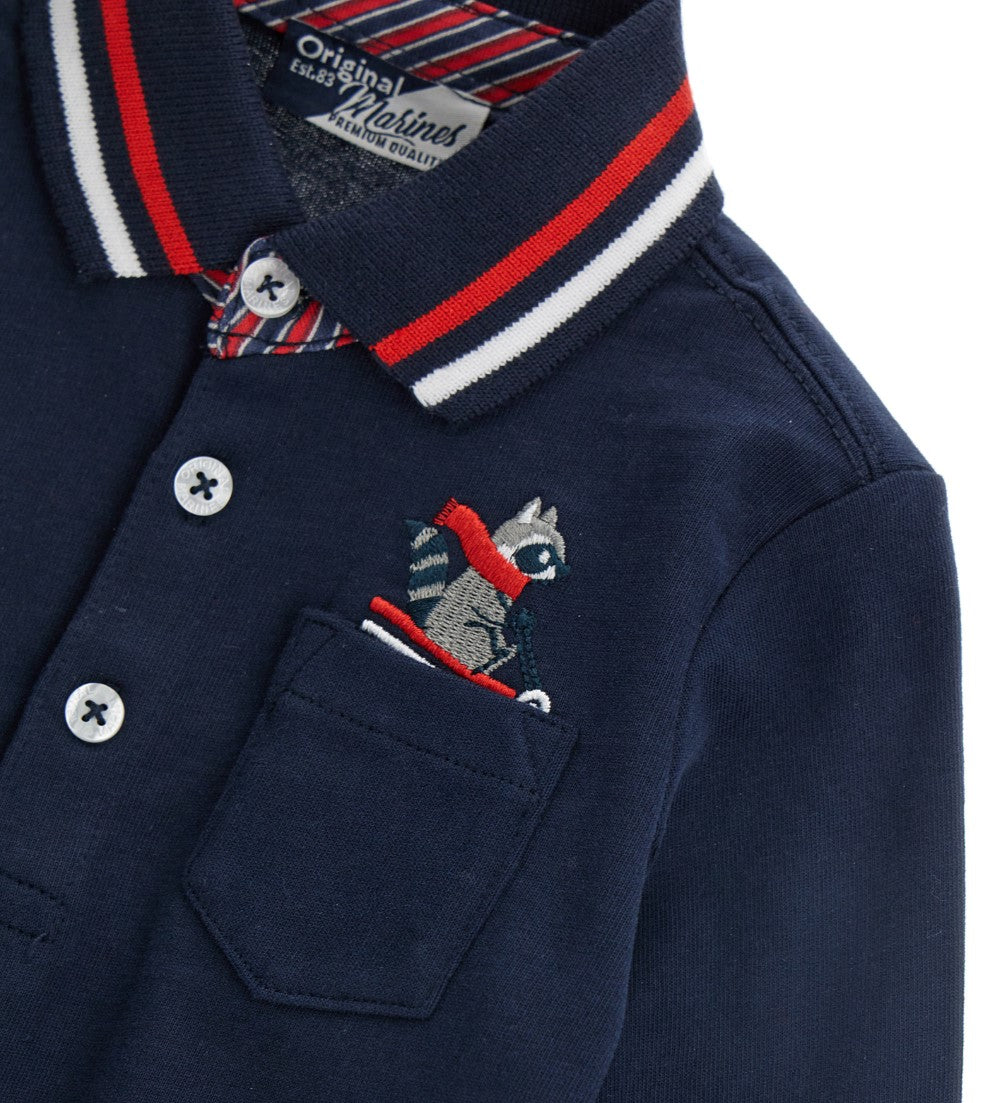 Polo en coton à manches longues, ouverture devant avec boutons, col côtelé teint en fil, fentes latérales, poche latérale et finitions côtelées.