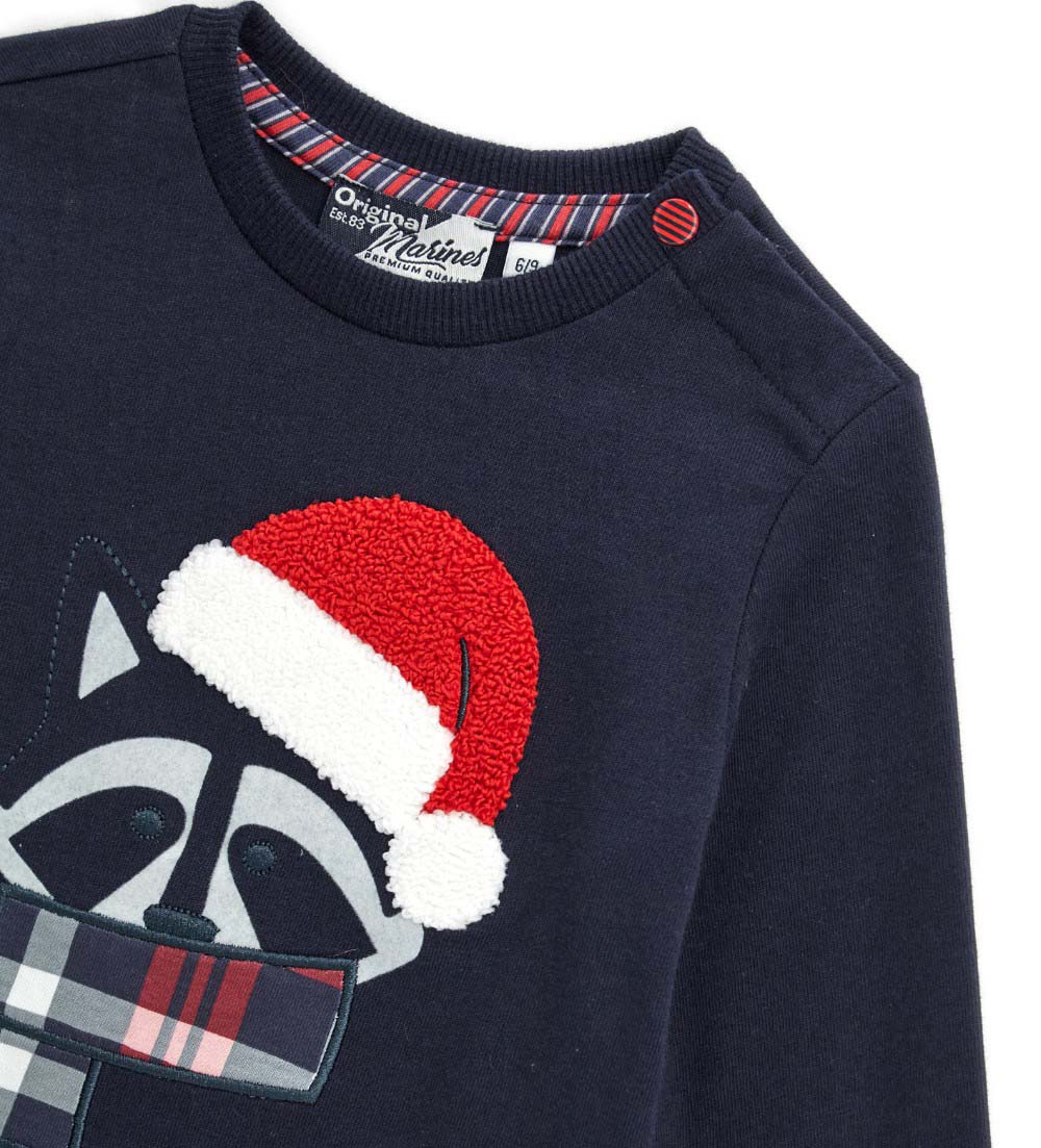 T-shirt ras du cou en coton à manches longues avec ouverture aux épaules par un bouton pression.