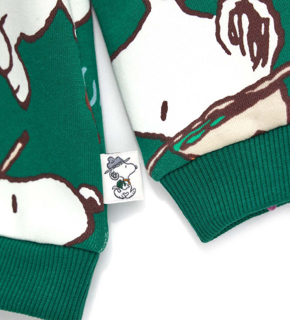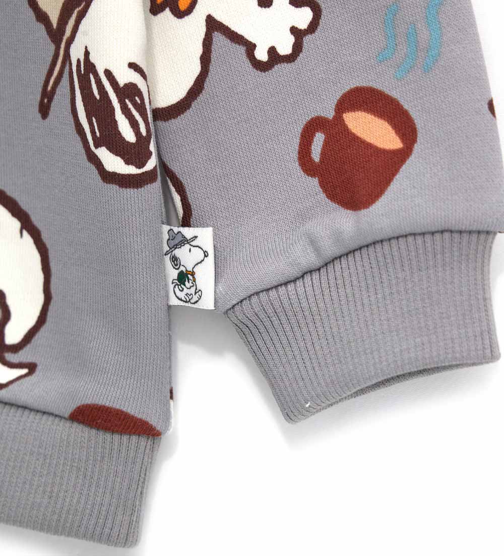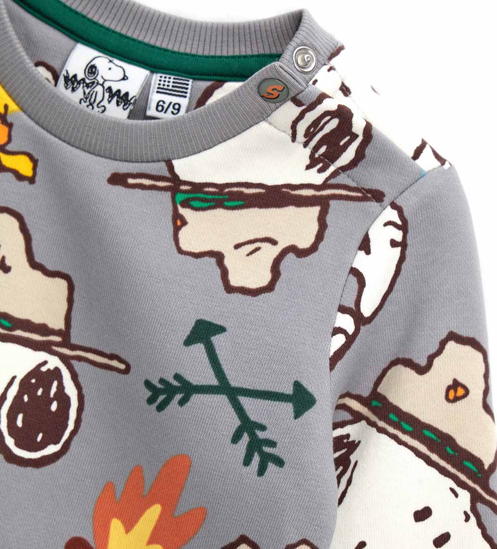 Sweat-shirt ras du cou Snoopy en coton chaud avec finitions côtelées, ouverture sur l’épaule et imprimé allover.