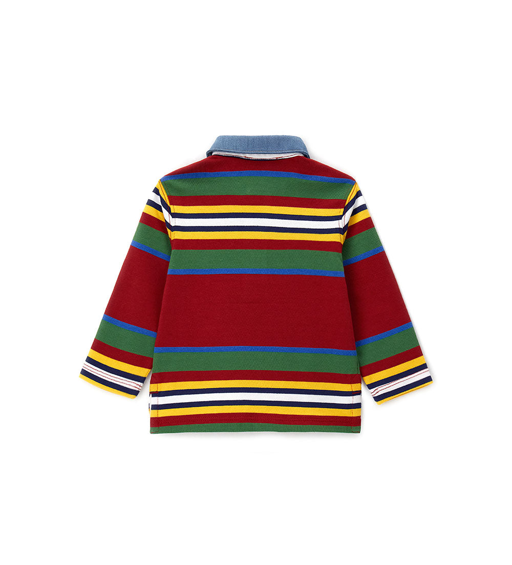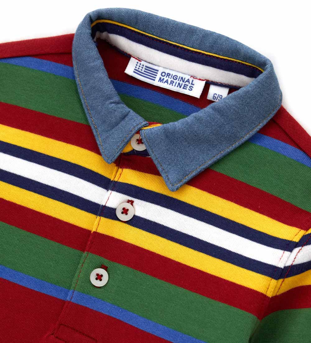 Polo à manches longues en jersey de coton fil-teint, doux et résistant. Col en denim léger pour une touche de style. Parfait pour un look décontracté et raffiné, idéal en toute occasion.