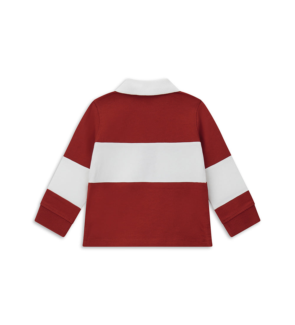 Polo à manches longues en jersey de coton, doux et confortable. Col et finitions côtelés pour un look raffiné, avec une rayure insérée qui ajoute une touche d’élégance. Idéal pour un look décontracté et raffiné.