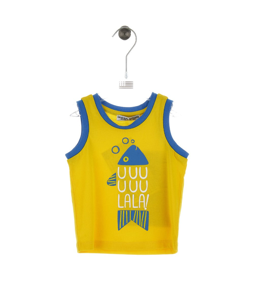 Débardeur à col ras du cou avec imprimé sur le devant.