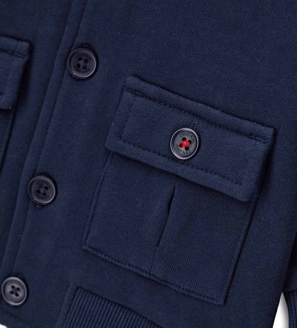 Sweat-shirt en coton chaud, doux et enveloppant. Col rond, ouverture boutonnée confortable sur le devant, grandes poches et finitions côtelées.