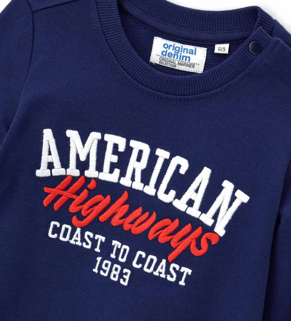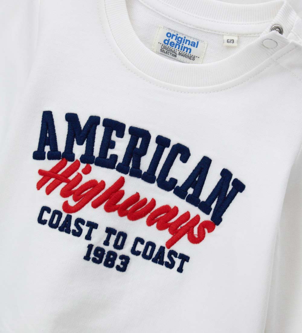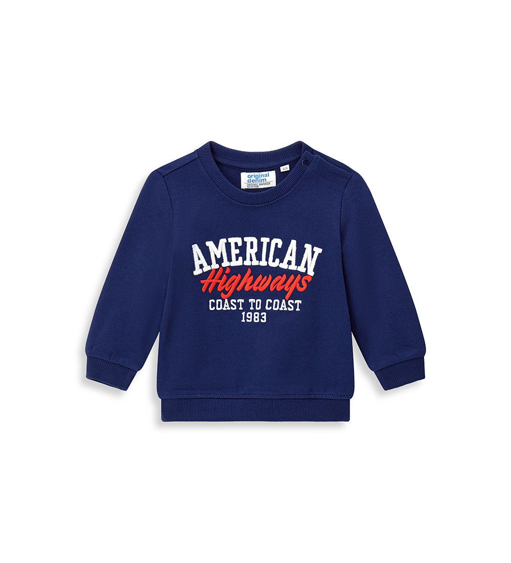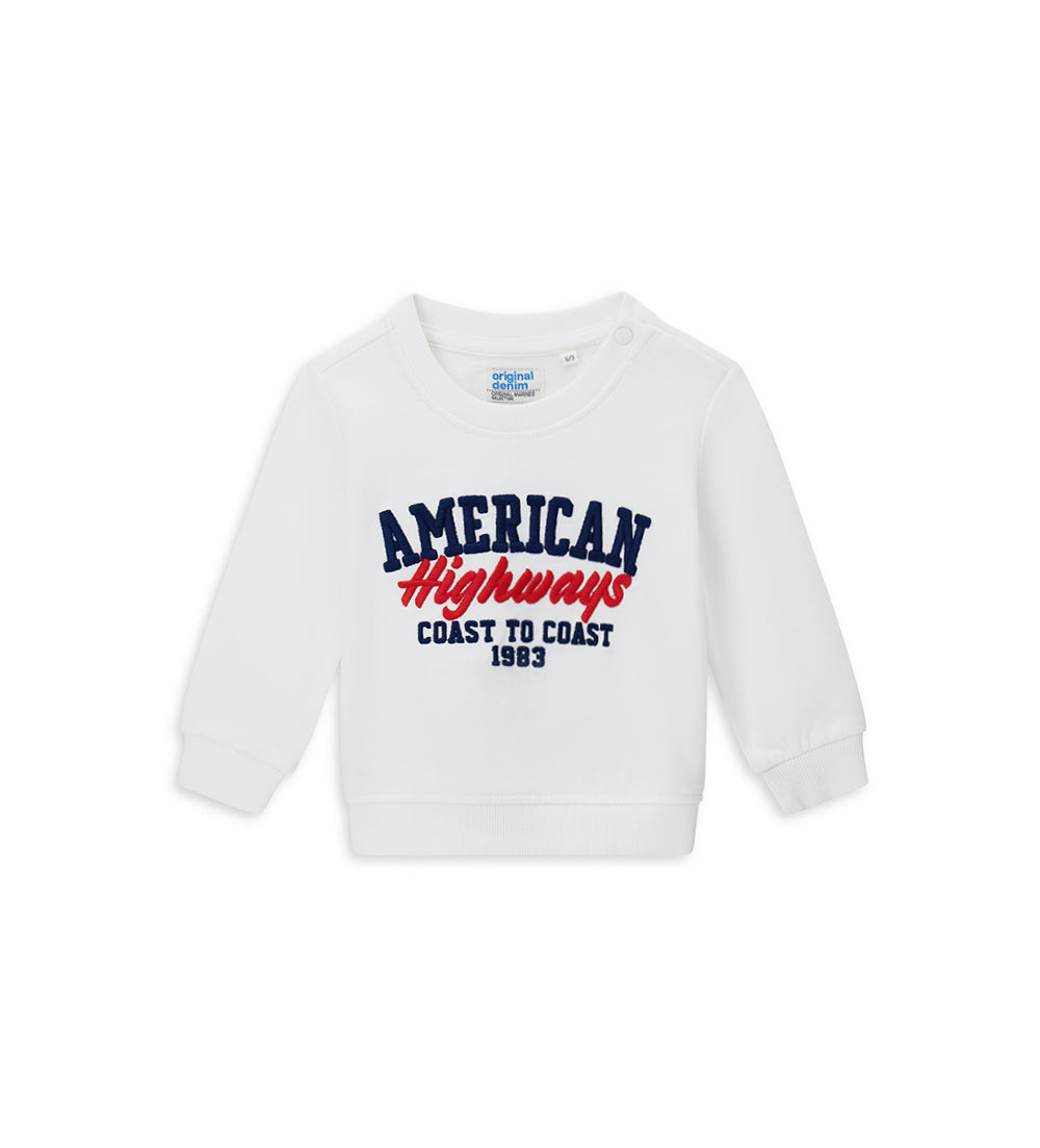 Sweat-shirt en coton à col rond, bords-côtes et broderie sur le devant pour une touche de style et un confort optimal au quotidien. Jusqu’à 2-3 ans, ouverture confortable par boutons-pression.