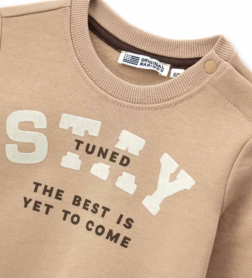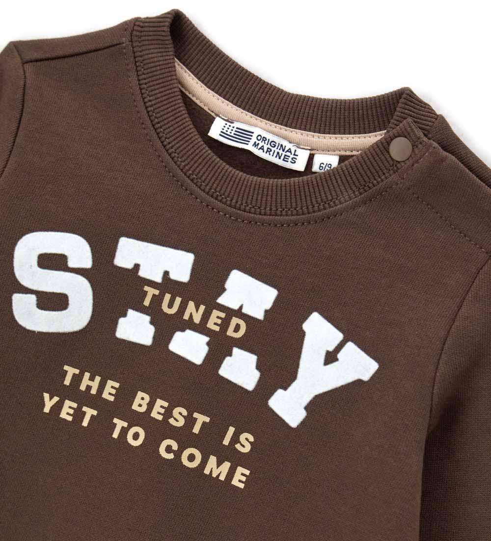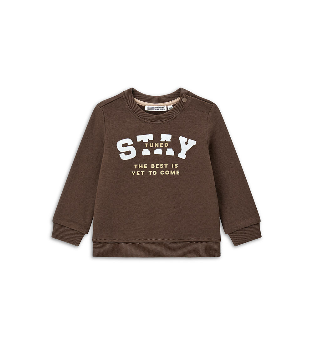 Sweat-shirt chaud en coton à col rond et bords côtelés, idéal pour plus de confort. Imprimé sur le devant. Uniquement pour les plus petites tailles jusqu’à 2-3 ans. Ouverture par bouton-pression pour un changement facile.