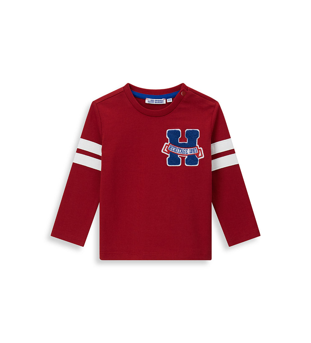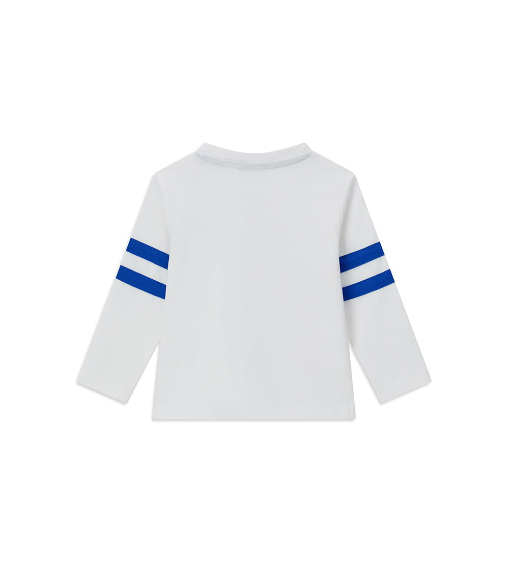 T-shirt en coton à manches longues, col rond, finitions côtelées et imprimé décoratif, broderie et application sur le devant. Pour les tailles jusqu’à 2-3 ans, ouverture pratique par boutons-pression.
