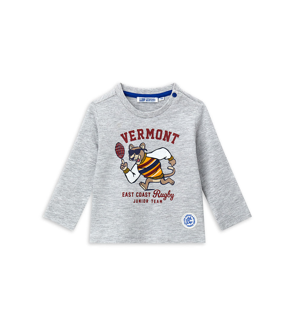 T-shirt en coton à manches longues, col rond, bords côtelés et imprimé sur le devant pour un look décontracté et moderne. Jusqu’à 2-3 ans, ouverture pratique par boutons-pression.