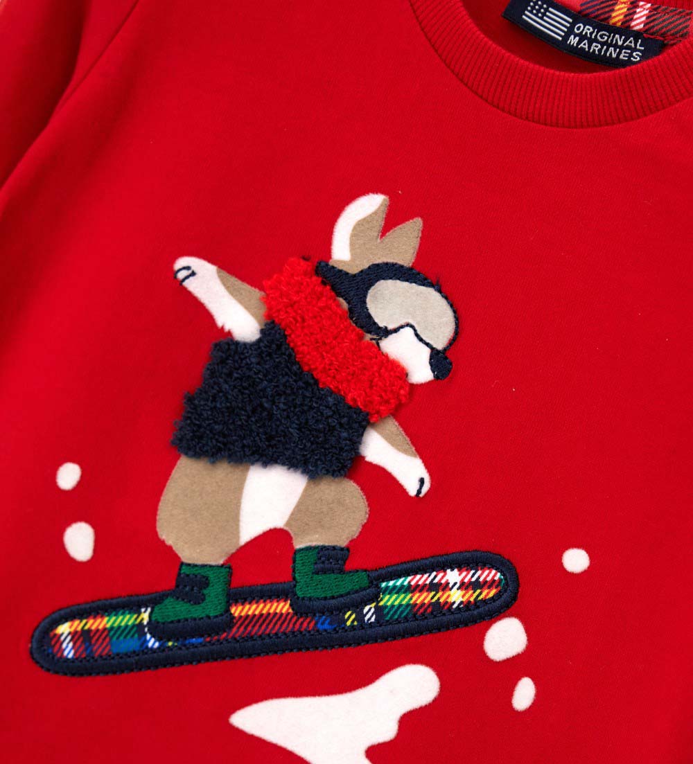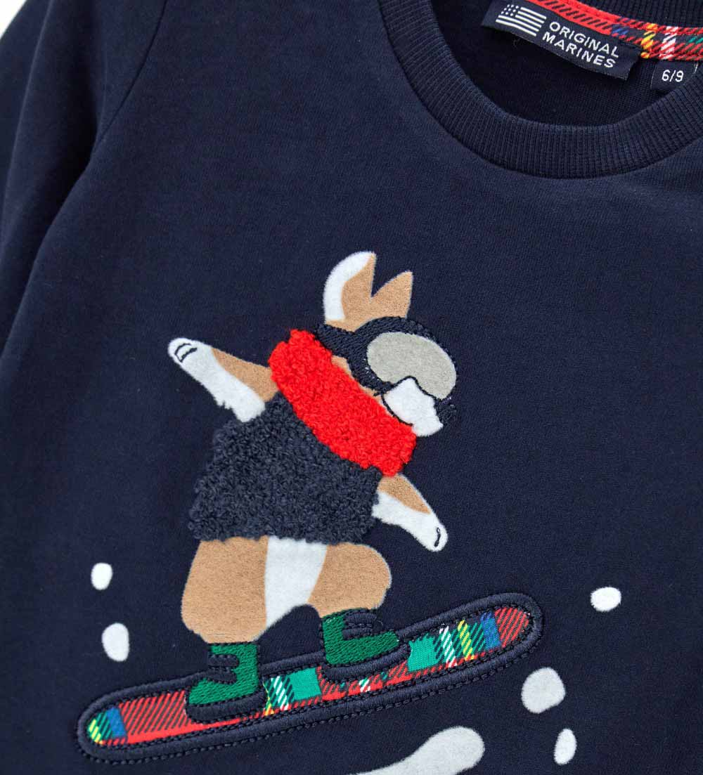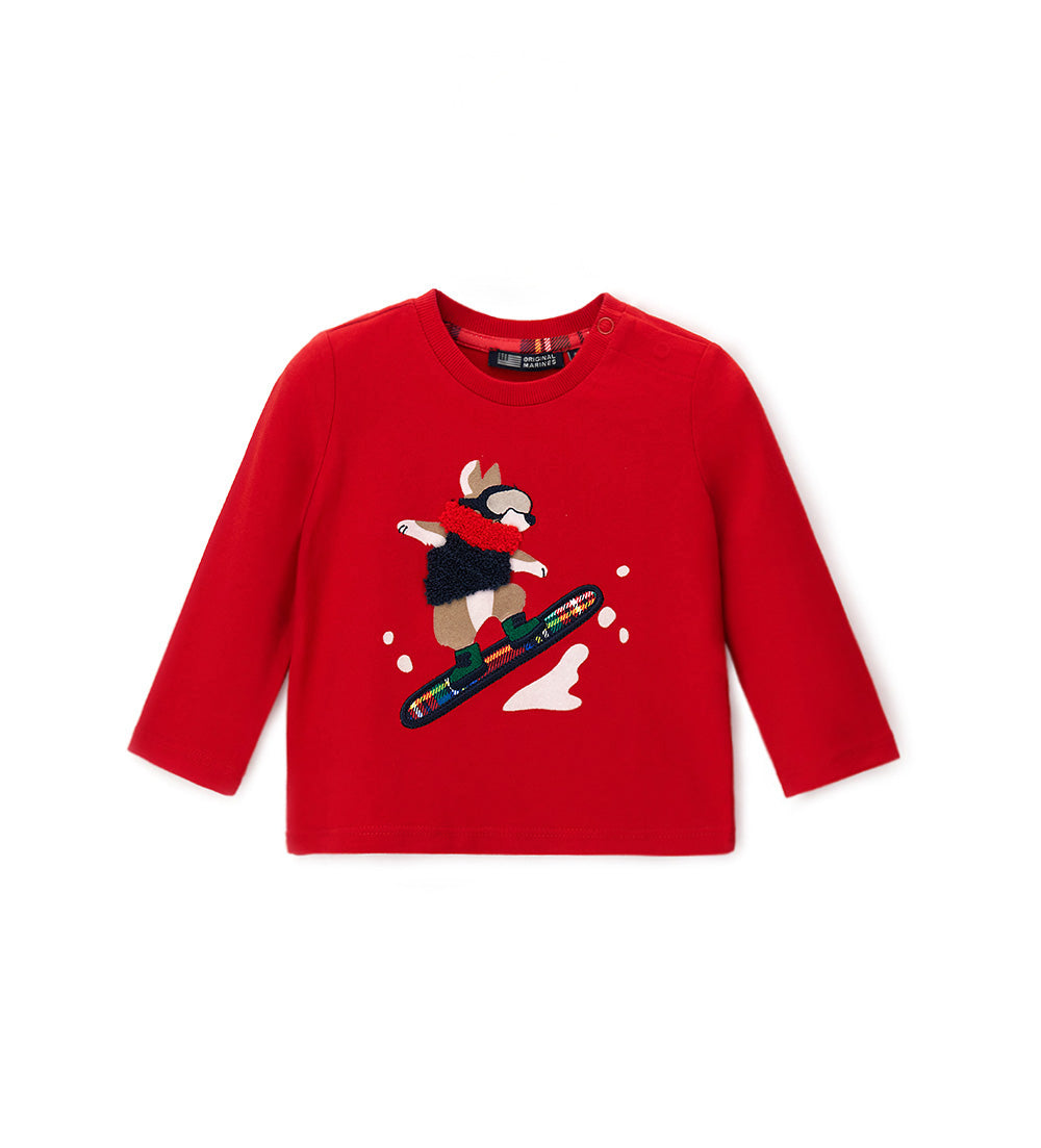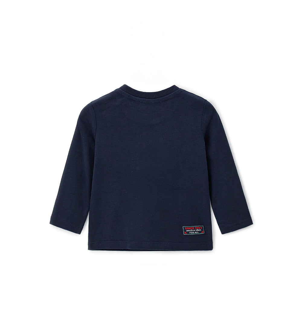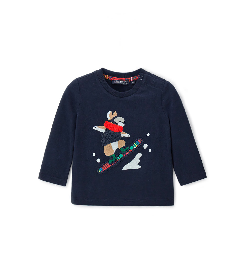 T-shirt à manches longues en coton chaud, doux et confortable, avec col rond et ouverture à l’épaule par boutons-pression. Broderie, imprimé et application sur le devant et étiquette brodée au dos.
