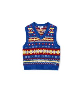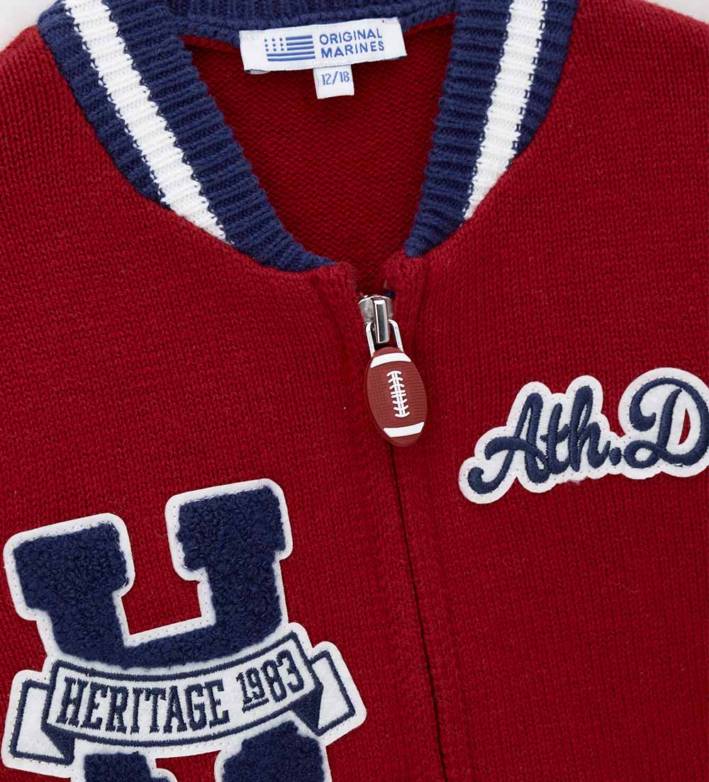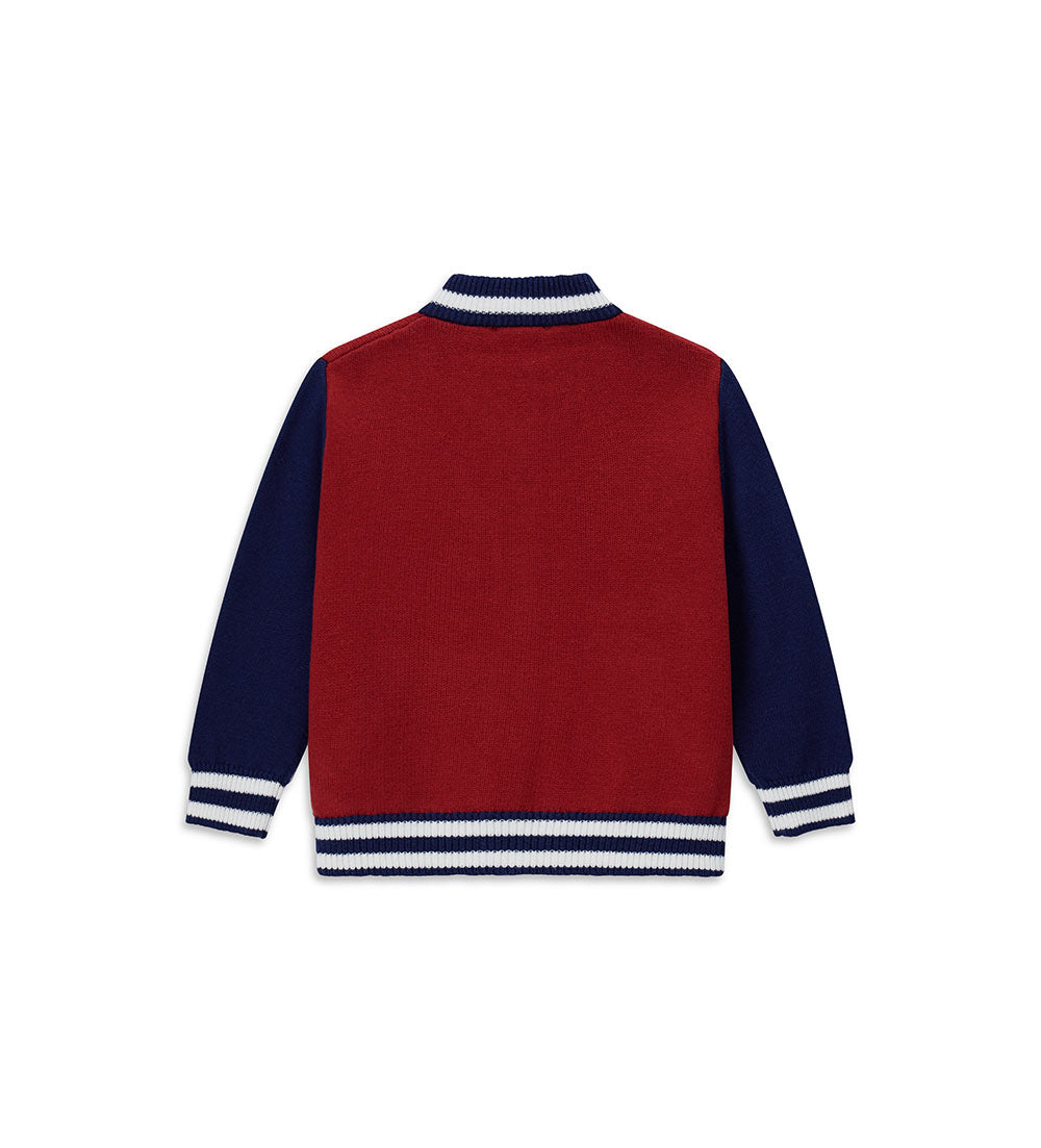 Pull en mélange de laine avec ouverture zippée sur le devant, bordures côtelées jacquard, broderie décorative et manches de couleur contrastante pour une touche de style unique et vivante.