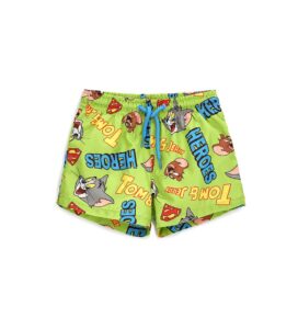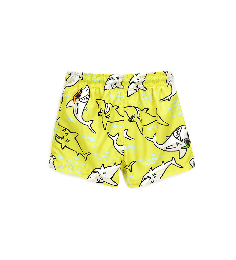 Maillot de bain style Bermuda avec slip intérieur en mesh, ceinture ajustable et imprimé intégral.