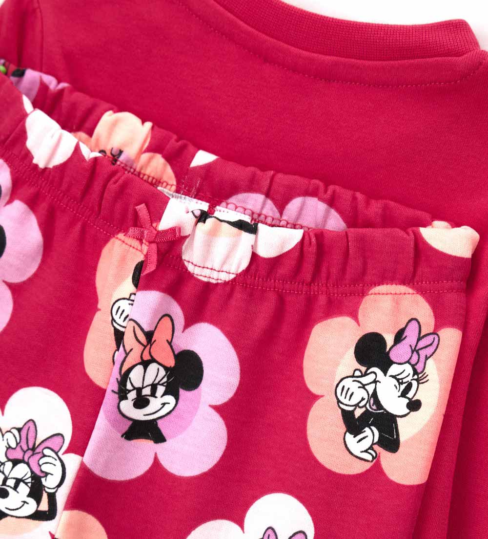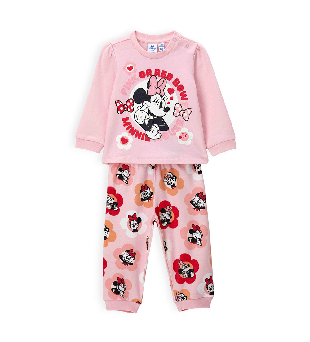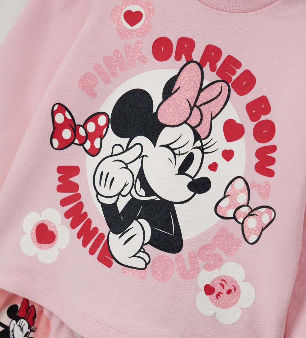 Pyjama Disney Minnie Mouse en coton chaud avec t-shirt col rond, imprimé devant, ouverture sur l’épaule et finitions côtelées et pantalon avec imprimé allover, nœud et finitions côtelées.