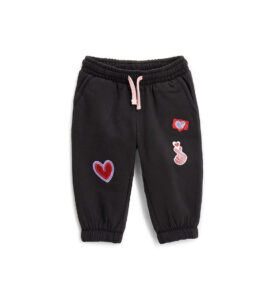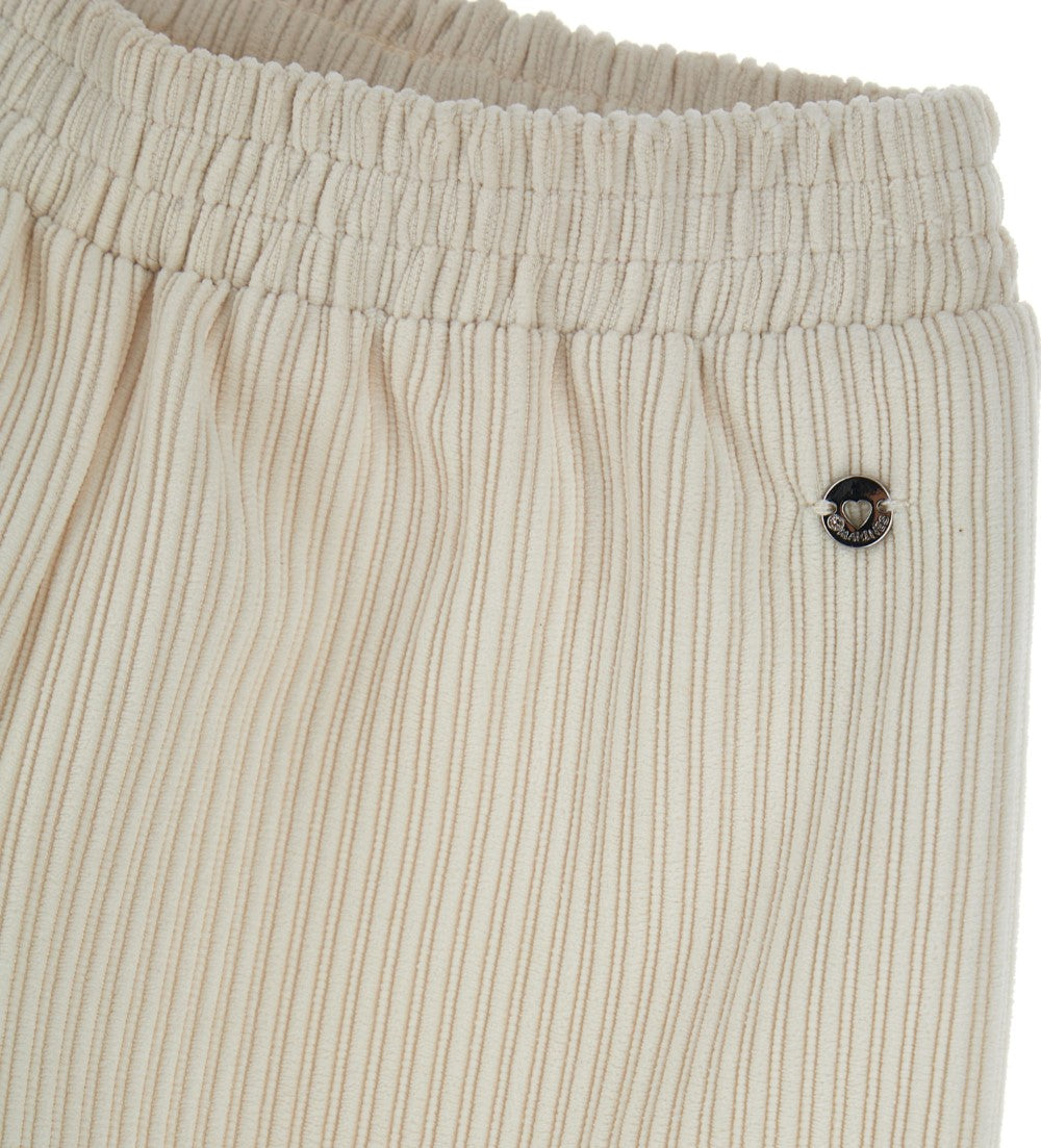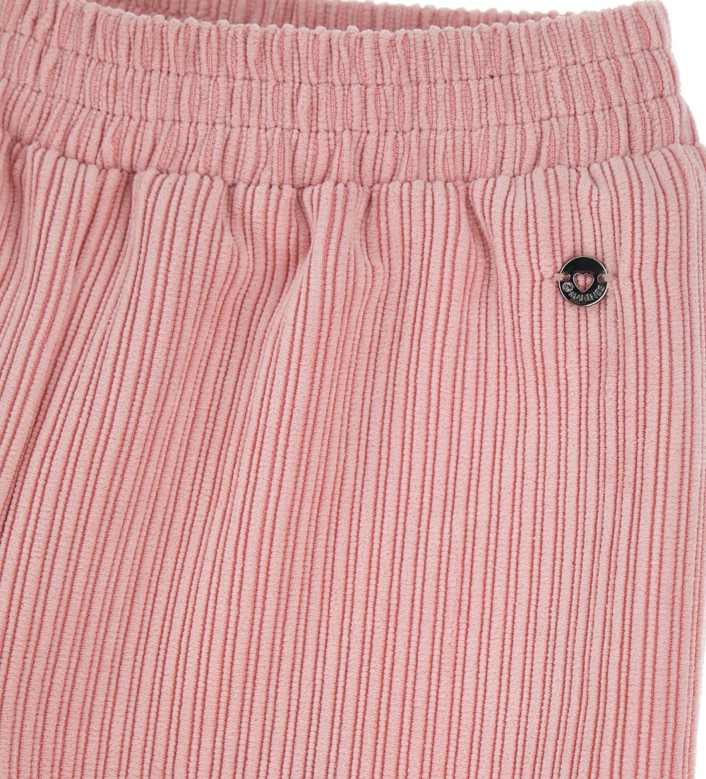 Pantalon en velours élastique avec breloque en métal sur le devant.