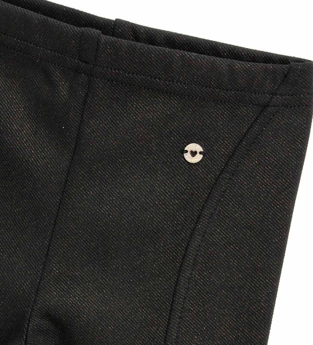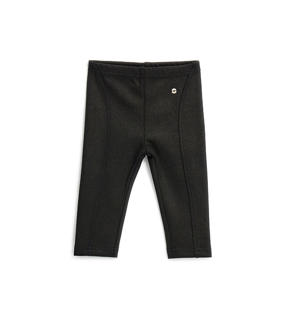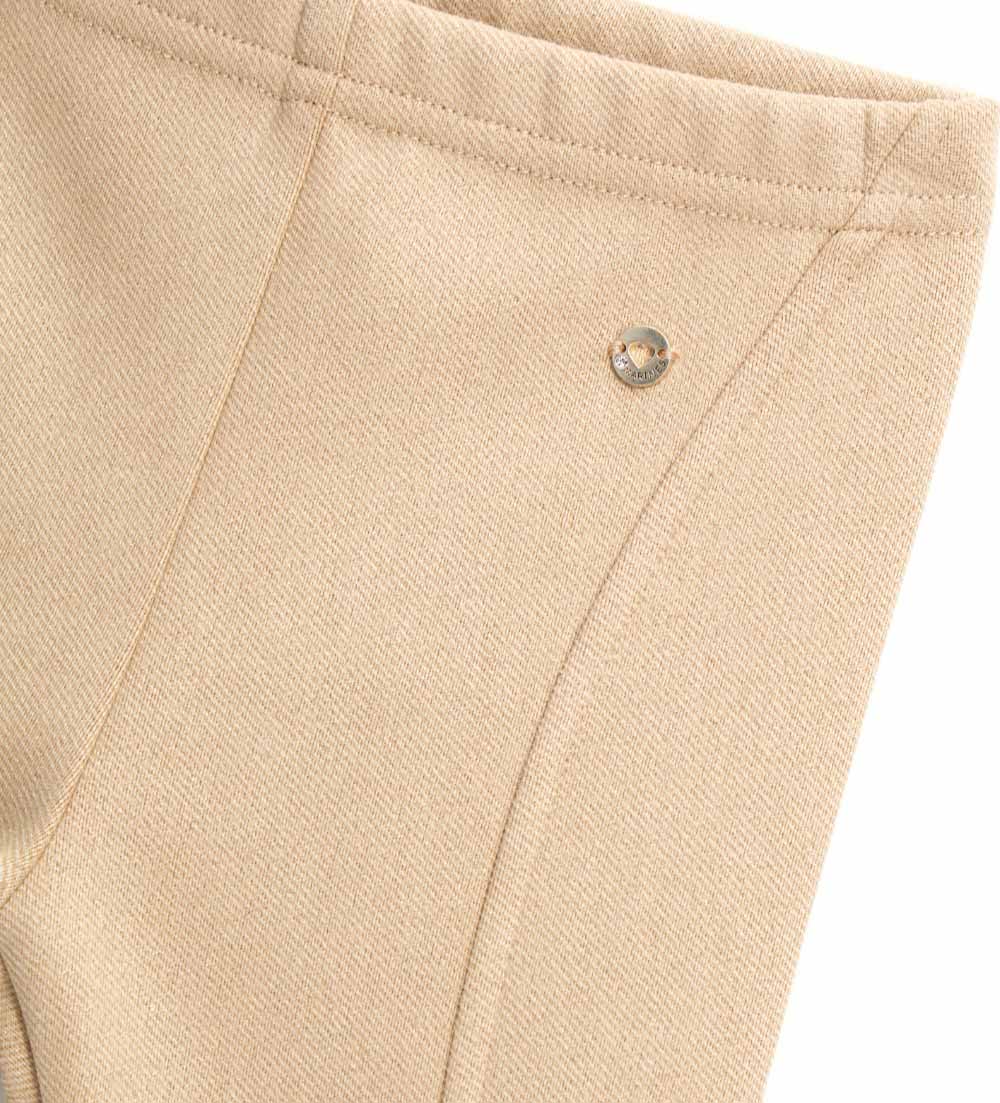 Leggings en coton molletonné extensible avec taille élastique et breloque sur le devant.