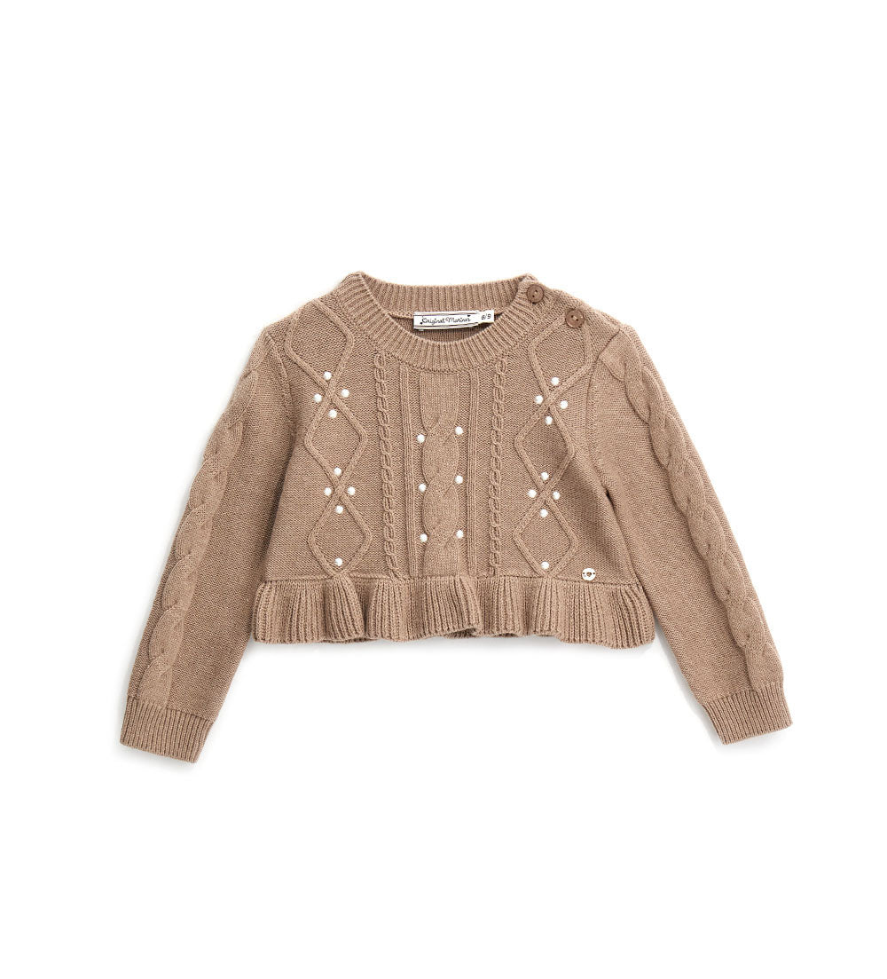 Pull ras du cou à manches longues en mélange coton-laine avec ouverture boutonnée en trou de serrure au dos et perles cousues sur le devant.