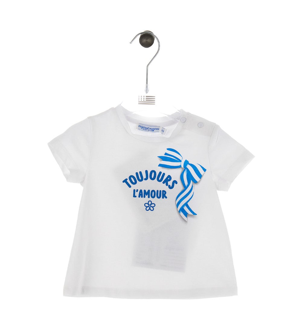 T-shirt en coton à col ras du cou et manches courtes avec ouverture aux épaules avec boutons-pression, imprimé et paillettes.