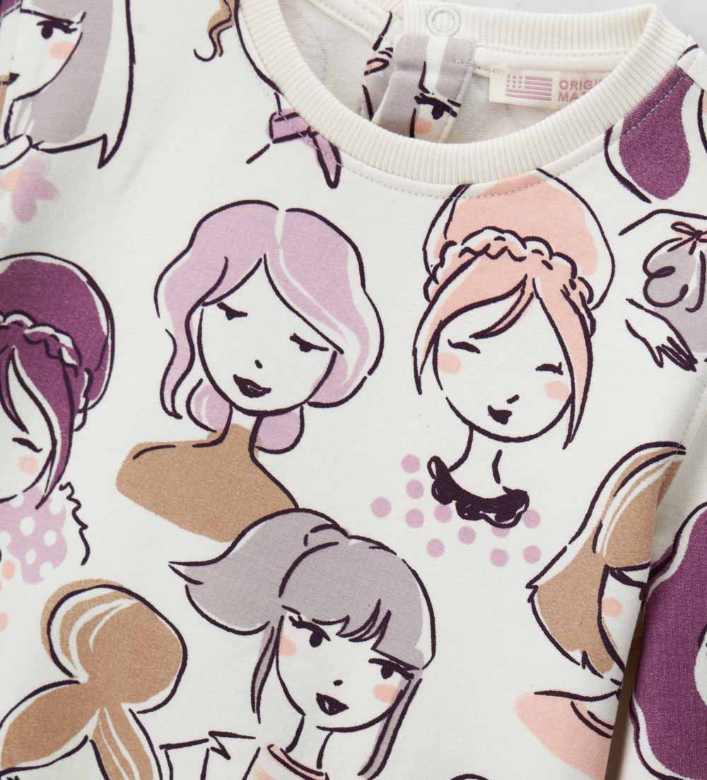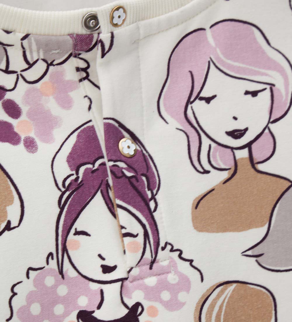 Sweat-shirt à col rond et manches longues en coton stretch chaud avec imprimé intégral. Jusqu’à 2-3 ans, ouverture confortable avec boutons.