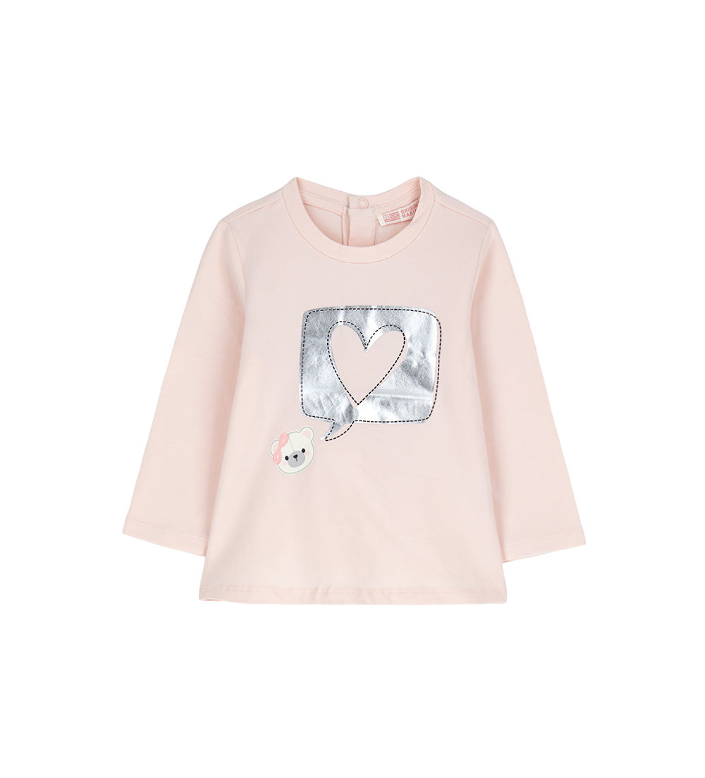 T-shirt en coton extensible à col rond, manches longues et imprimé décoratif avec détails métalliques sur le devant. Jusqu’à 2-3 ans, ouverture boutonnée confortable.