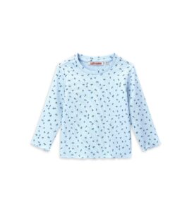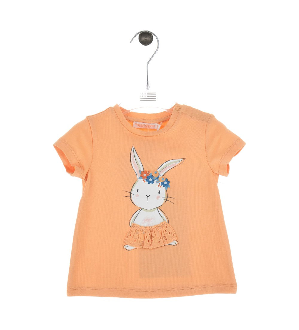 T-shirt en coton à col rond, manches courtes et ouverture aux épaules avec boutons-pression, imprimé, broderie et application sur le devant.