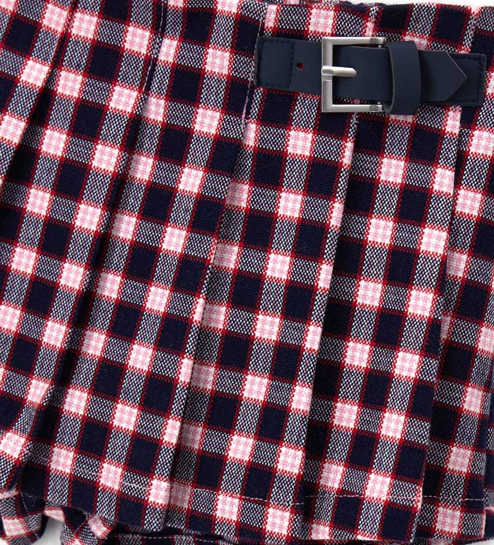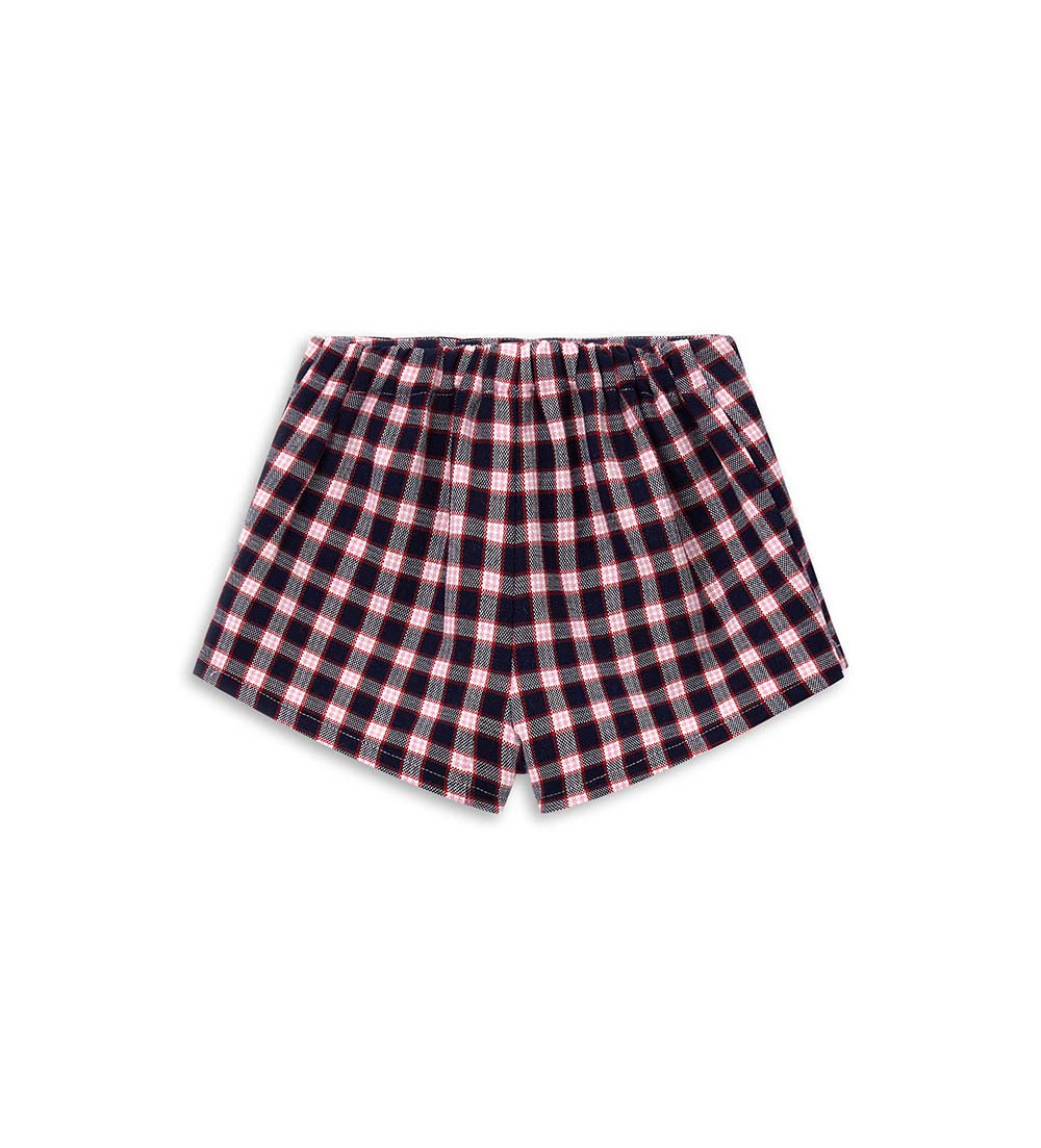 Bermuda tartan à taille élastiquée pour un confort optimal. Fausse ceinture devant pour une touche de style, idéal pour un look pratique et tendance.