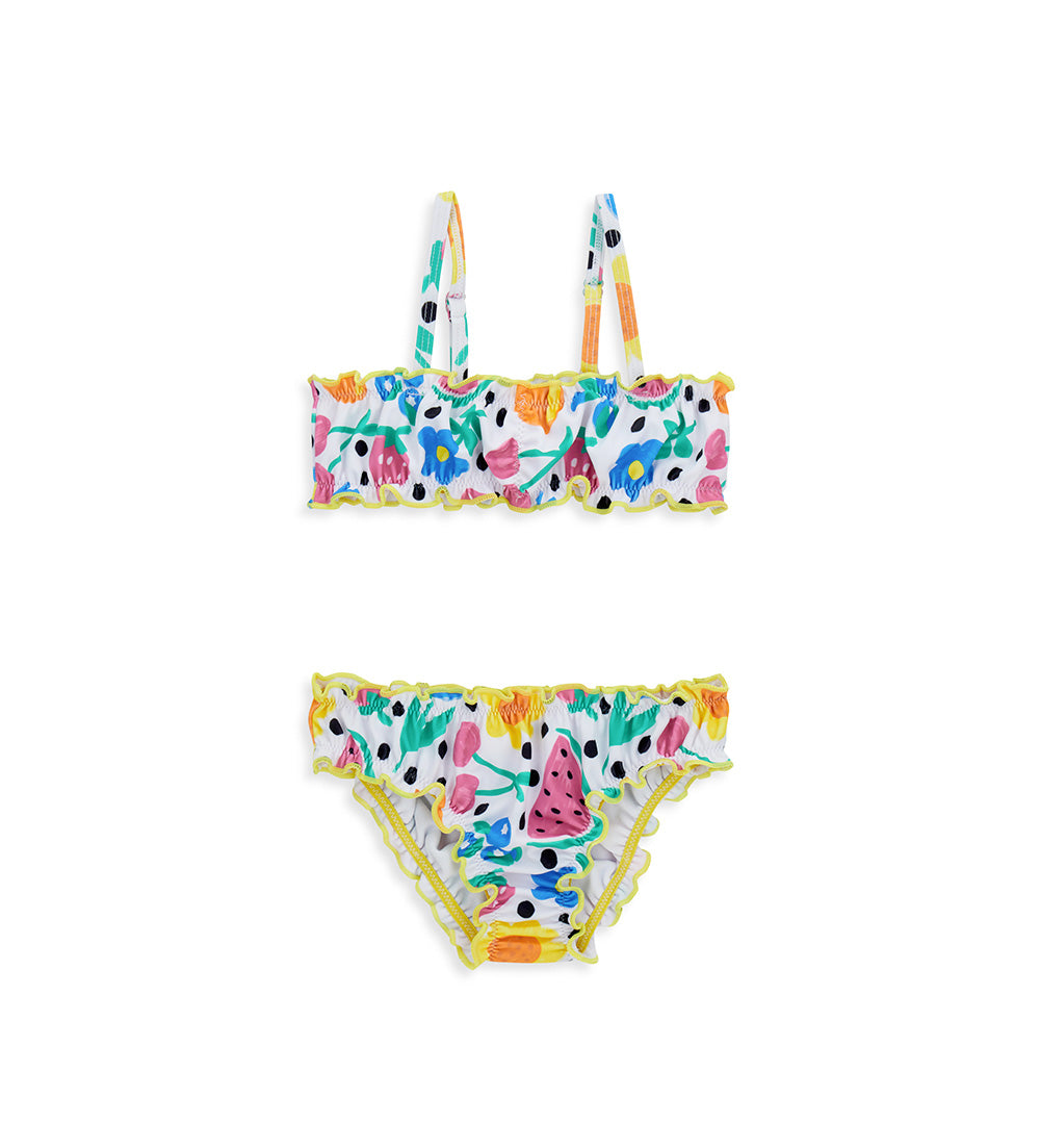 Bikini de plage en lycra à motifs avec haut à bretelles réglables et slip doublé intérieurement.