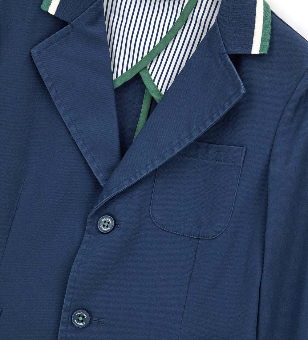 Veste en gabardine de coton extensible avec col côtelé teint en fil, ouverture boutonnée sur le devant, poches plaquées et étiquette brodée sur la manche.