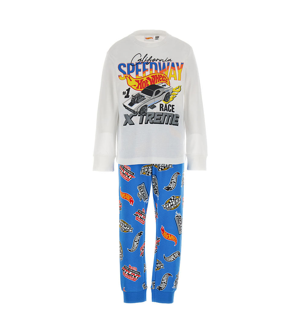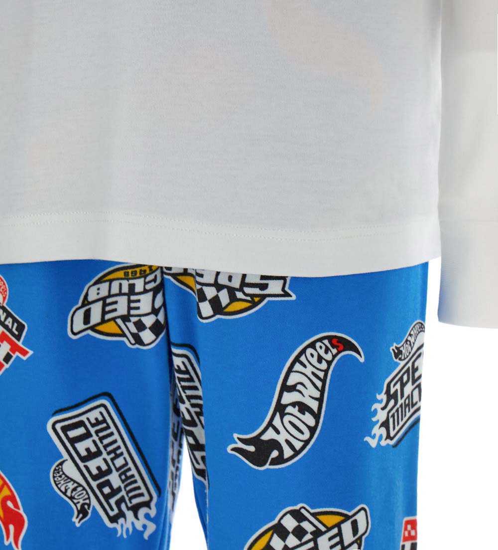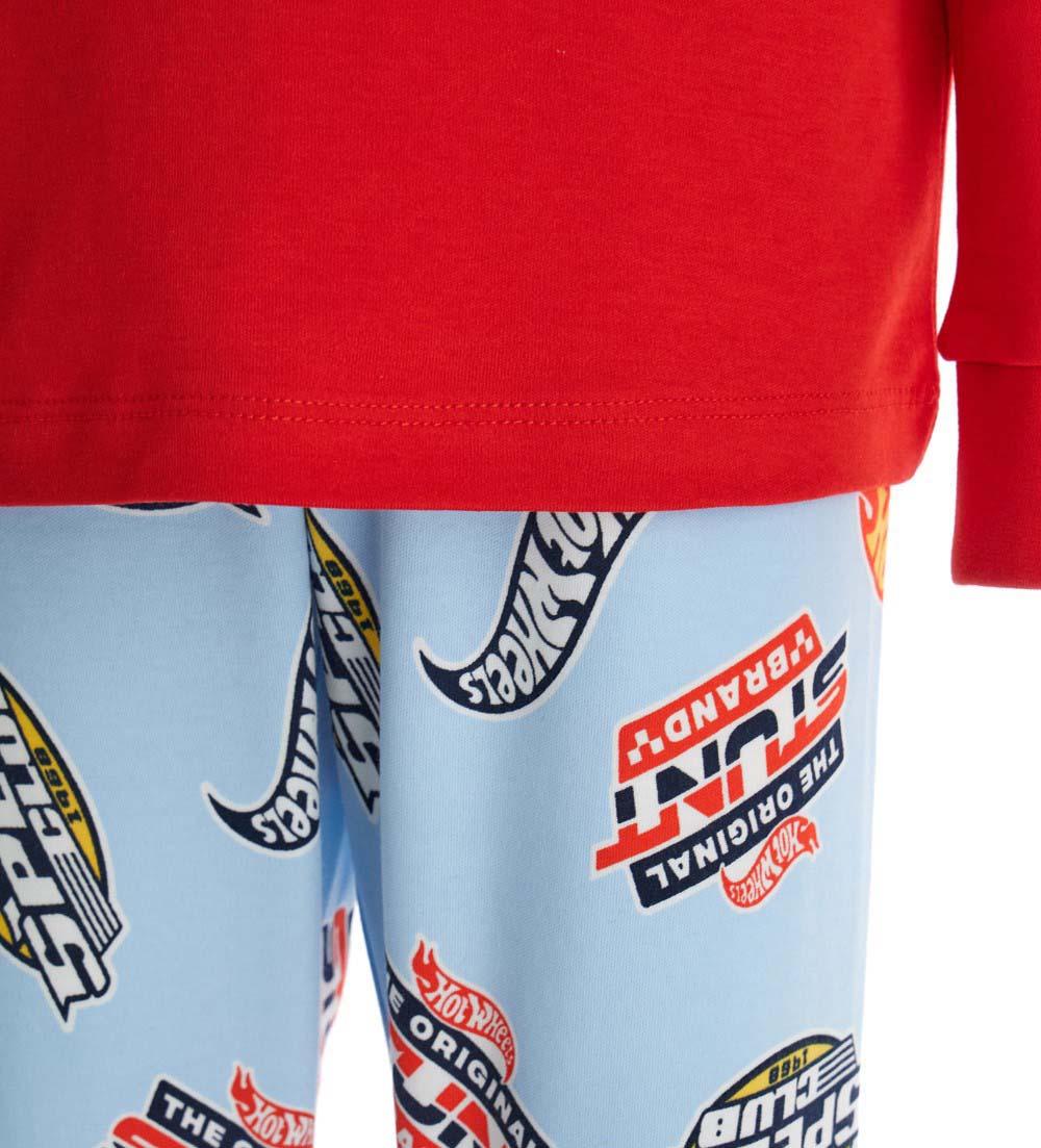 Pyjama Hot Wheels en coton chaud : t-shirt ras du cou, imprimé et finitions côtelées. Pantalon entièrement imprimé et finitions côtelées.
