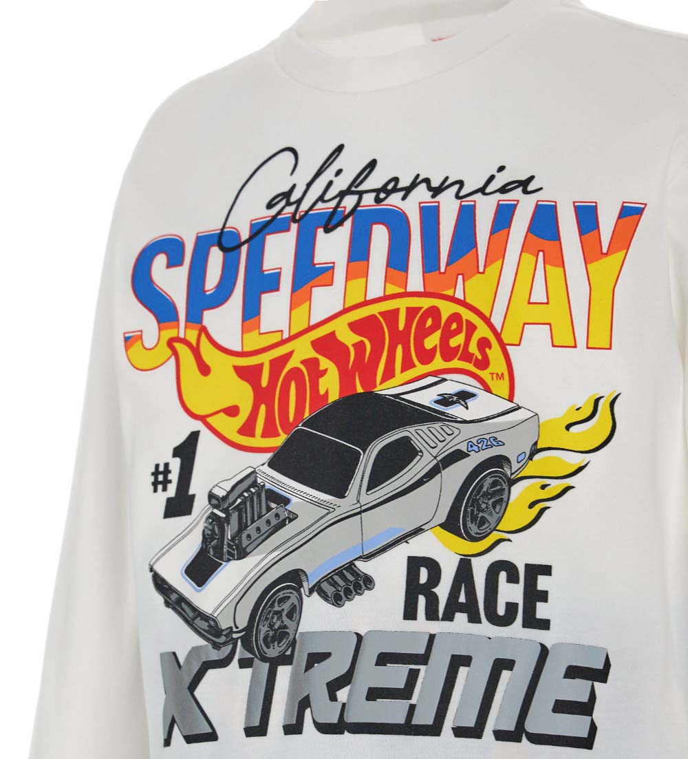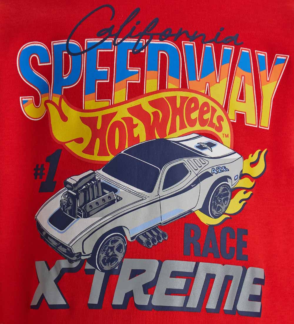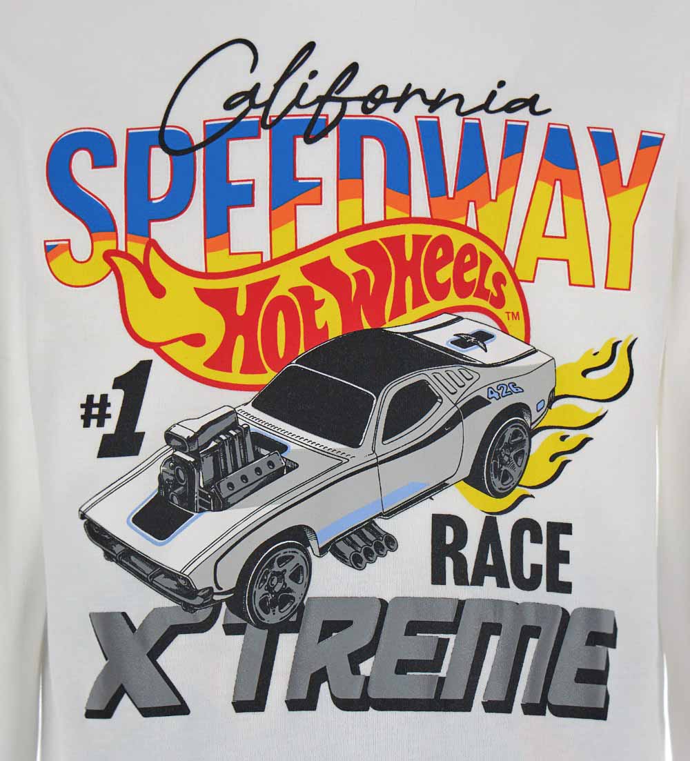 Pyjama Hot Wheels en coton chaud : t-shirt ras du cou, imprimé et finitions côtelées. Pantalon entièrement imprimé et finitions côtelées.