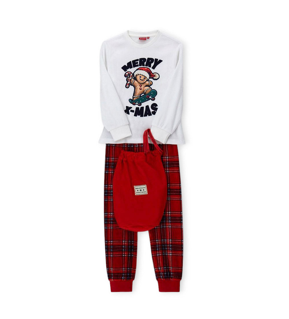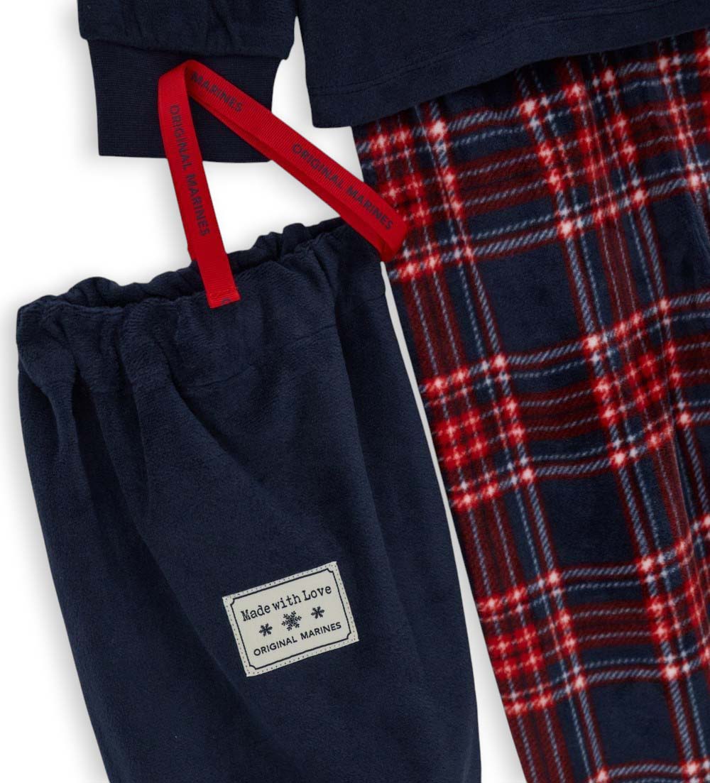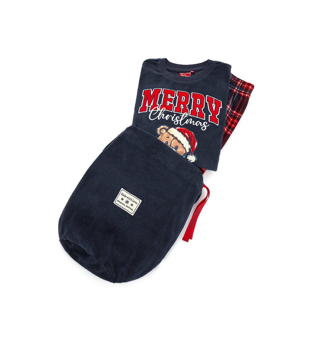 Pyjama composé d’une chemise à manches longues, col rond, ornée d’appliqués et de broderies. Pantalon stretch imprimé, ourlet côtelé et sac de pyjama pratique avec cordon de serrage.