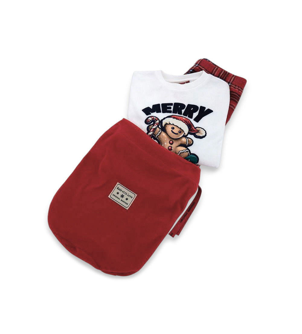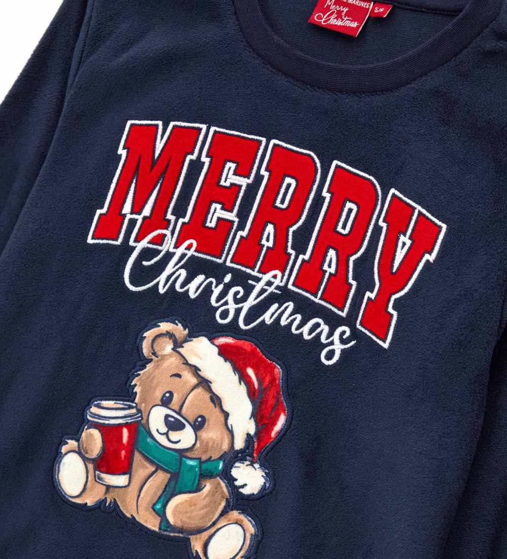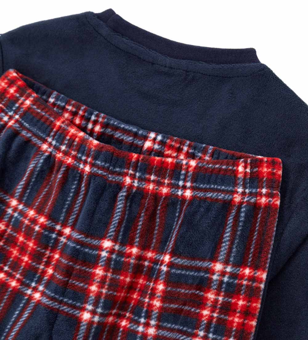 Pyjama composé d’une chemise à manches longues, col rond, ornée d’appliqués et de broderies. Pantalon stretch imprimé, ourlet côtelé et sac de pyjama pratique avec cordon de serrage.