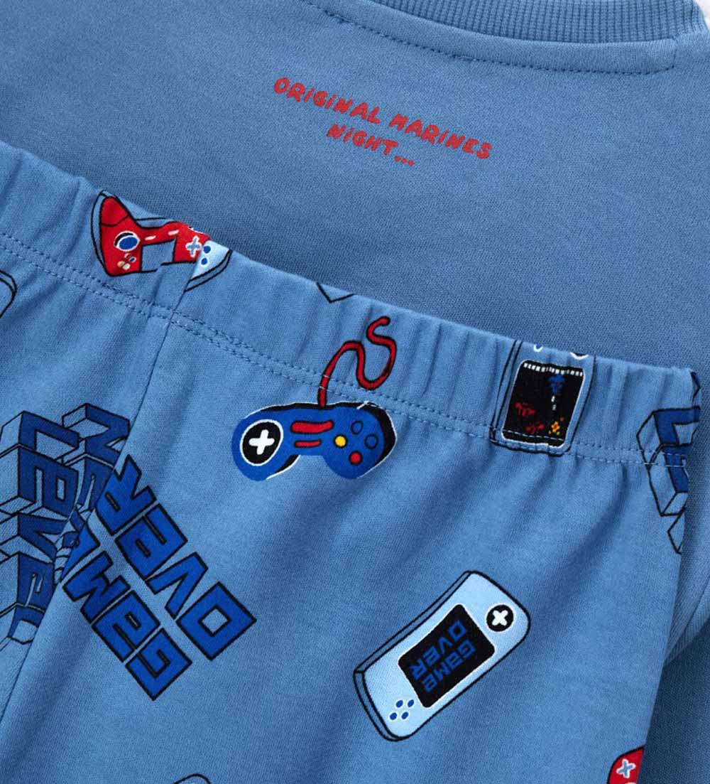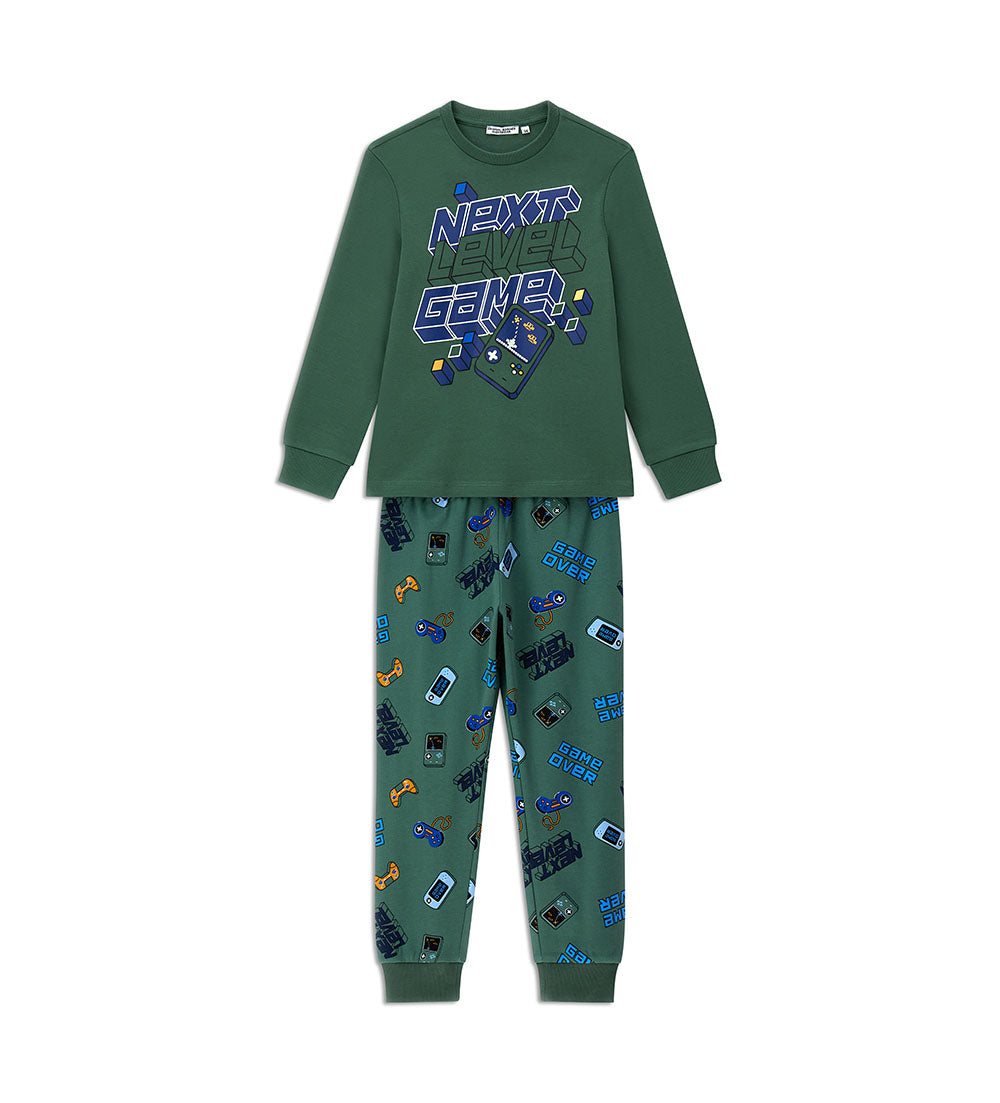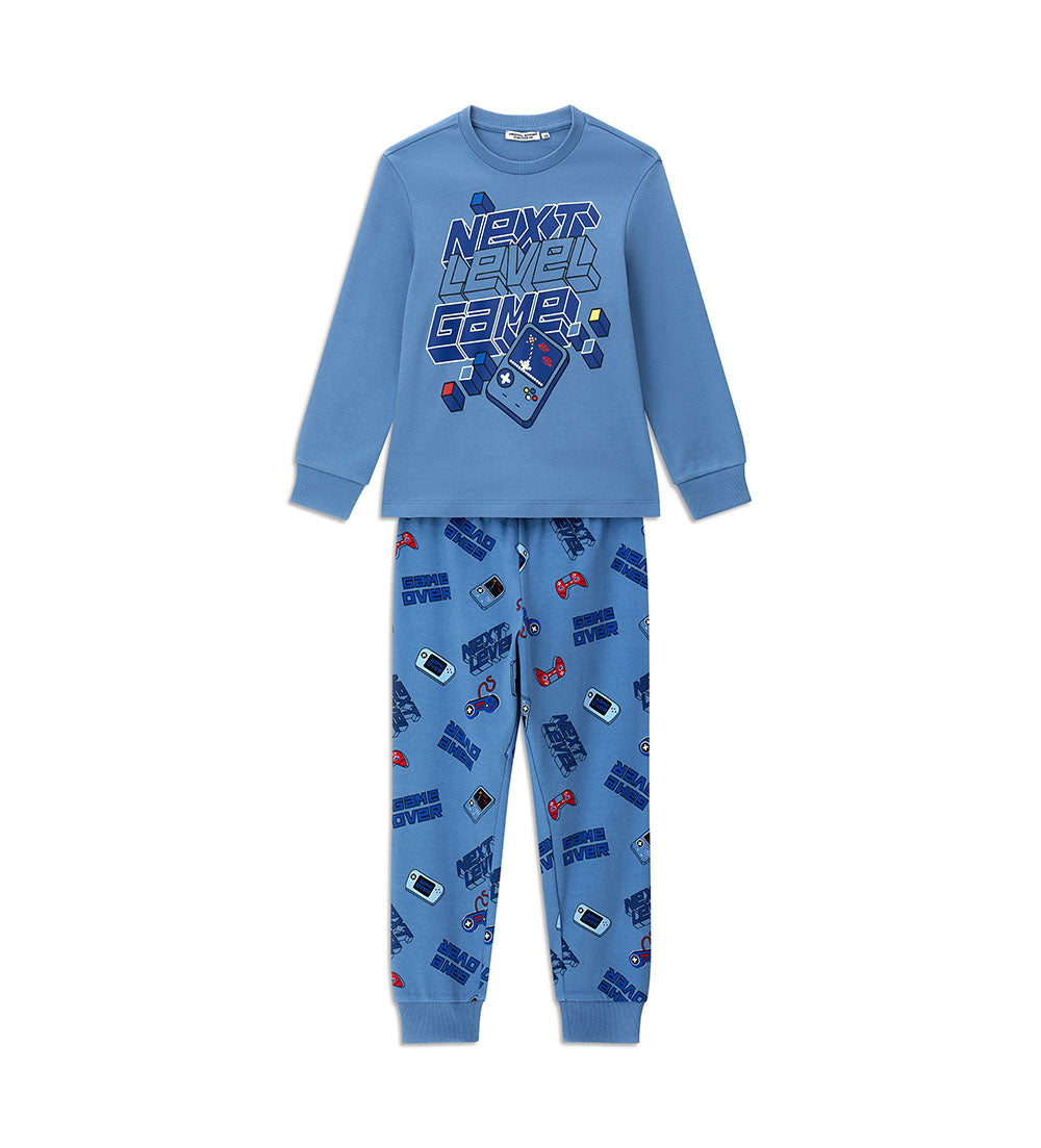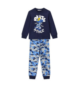 Pyjama chaud en coton avec un t-shirt col rond et un imprimé coloré, rehaussé de finitions côtelées. Pantalon à imprimé intégral et finitions côtelées, pour un look confortable et élégant.