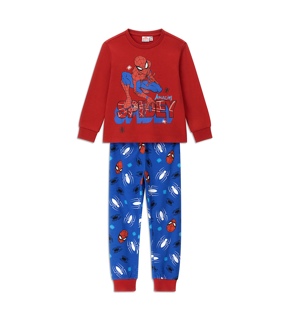 Pyjama Marvel Spiderman en coton chaud avec t-shirt col rond, imprimé devant et finitions côtelées et pantalon assorti avec imprimé allover.