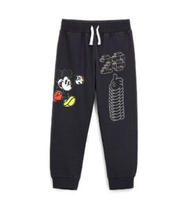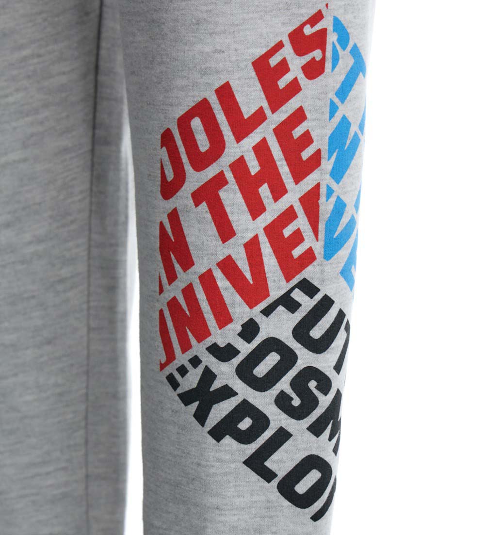 Pantalon sweat-shirt en coton avec bordure côtelée, taille réglable avec cordon de serrage et imprimé sur une jambe.