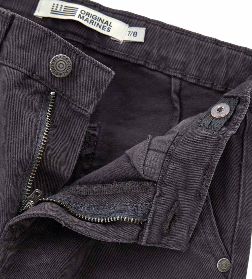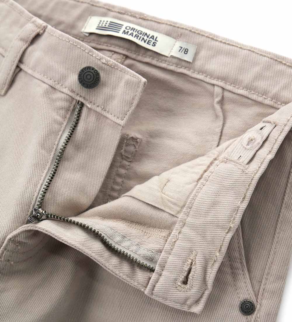 Pantalon en coton teint en pièce, au style décontracté et moderne. Poches américaines et plaquées à l’arrière, fermeture boutonnée et zippée, taille ajustable, étiquette brodée pour une touche d’élégance.