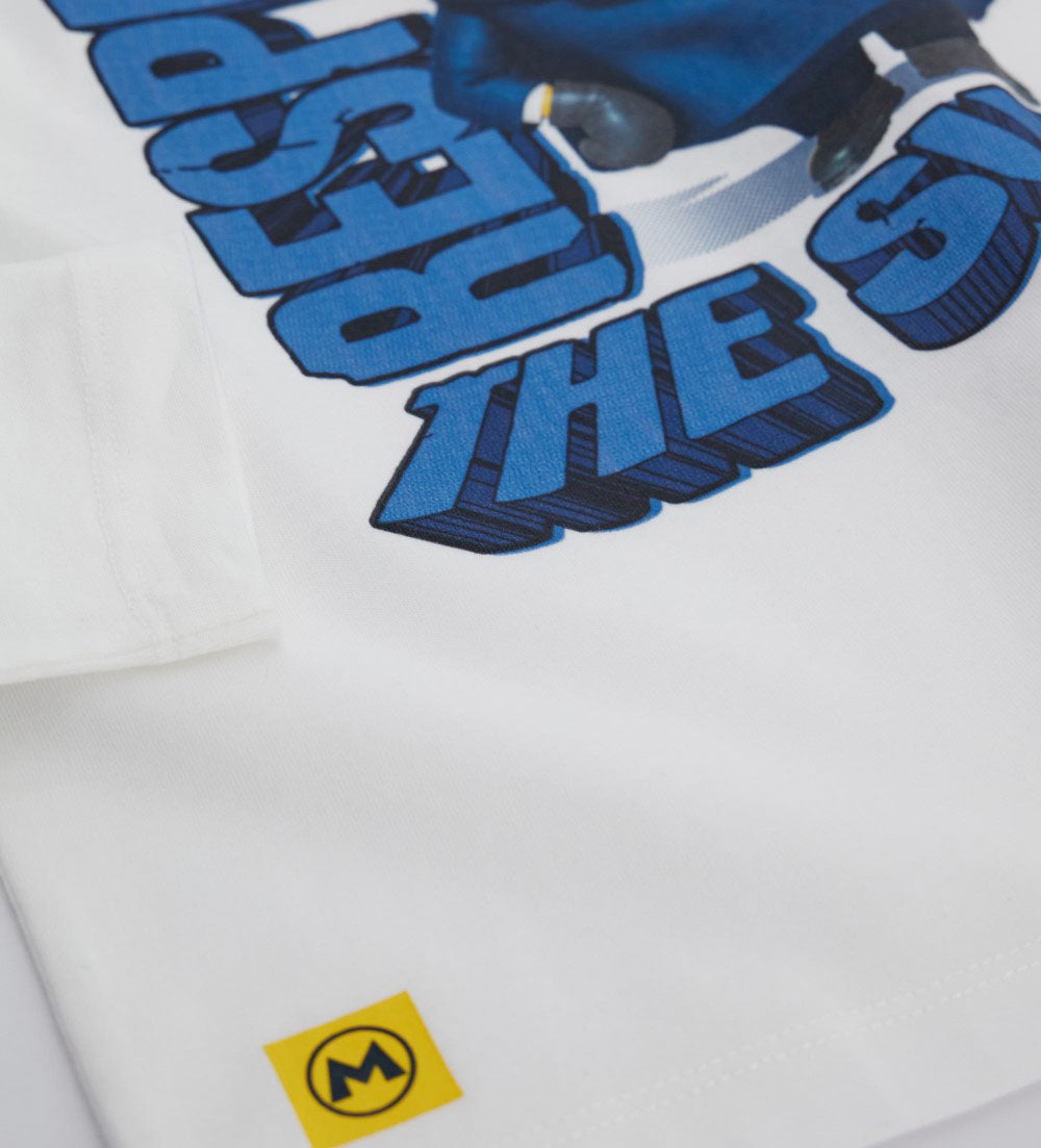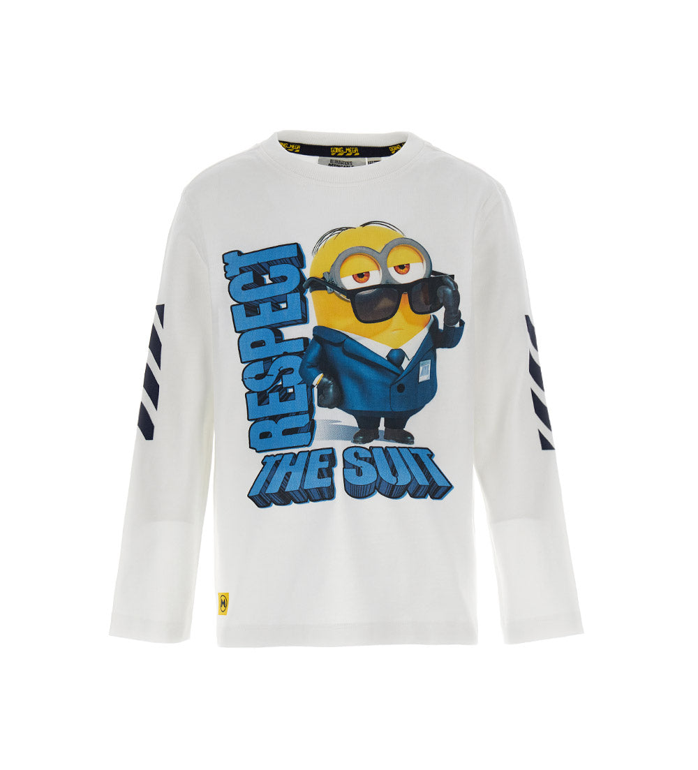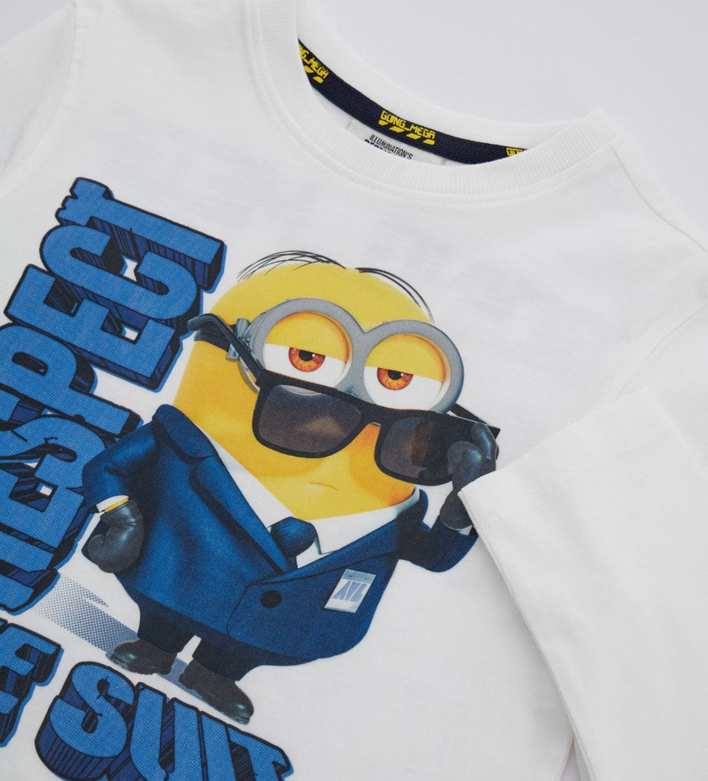 T-shirt en coton à manches longues Minions avec col rond côtelé et imprimés.